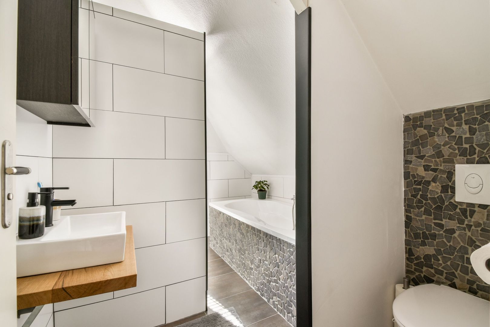 De badkamer is eveneens in 2017 geplaatst. Ook hier is er gekozen voor een zeer efficiënte indeling waardoor het gelukt is om een 2e toilet, een wastafel in meubel, ligbad en een inloopdouche te plaatsen.