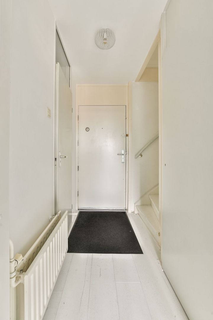 Overdekte galerij met entree van de woning, met naast de entreedeur de meterkast. Hal met trap naar de woonverdieping en toegang tot de slaapkamer en de badkamer. De hal is voorzien van laminaatvloer, wat doorloopt in de slaapkamer. De slaapkamer is bijna 14,5 m2 groot. De badkamer is gedeeltelijk betegeld en voorzien van een douchehoek met thermostaatkraan en een wastafel.