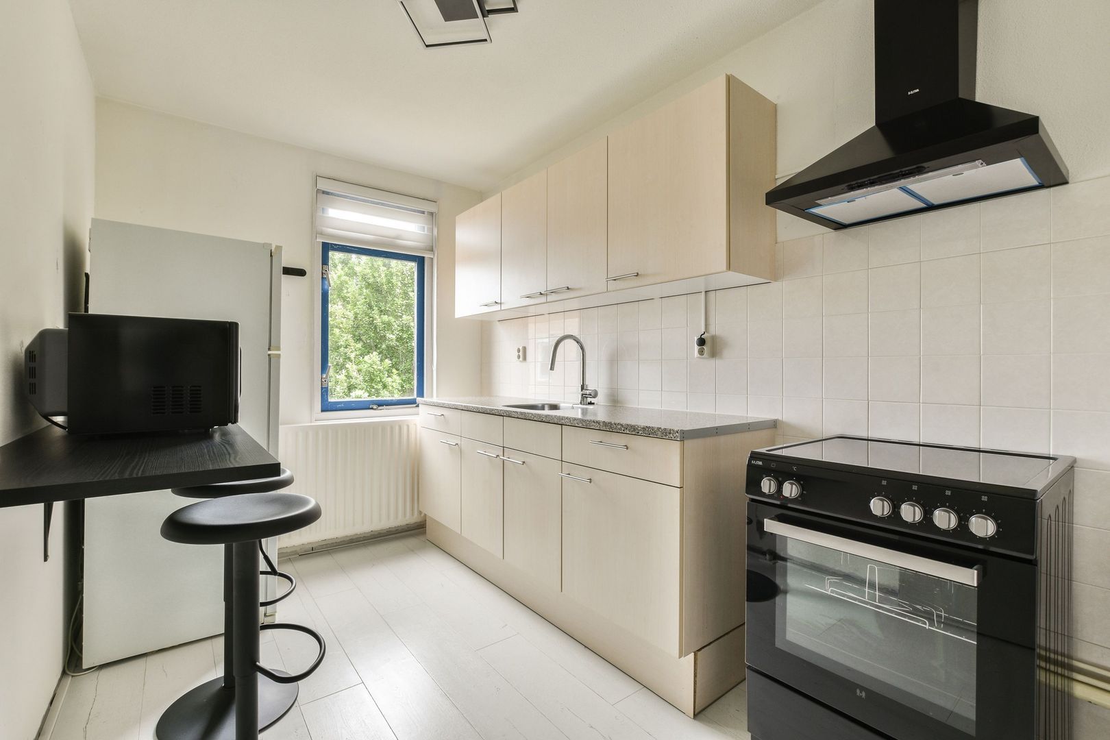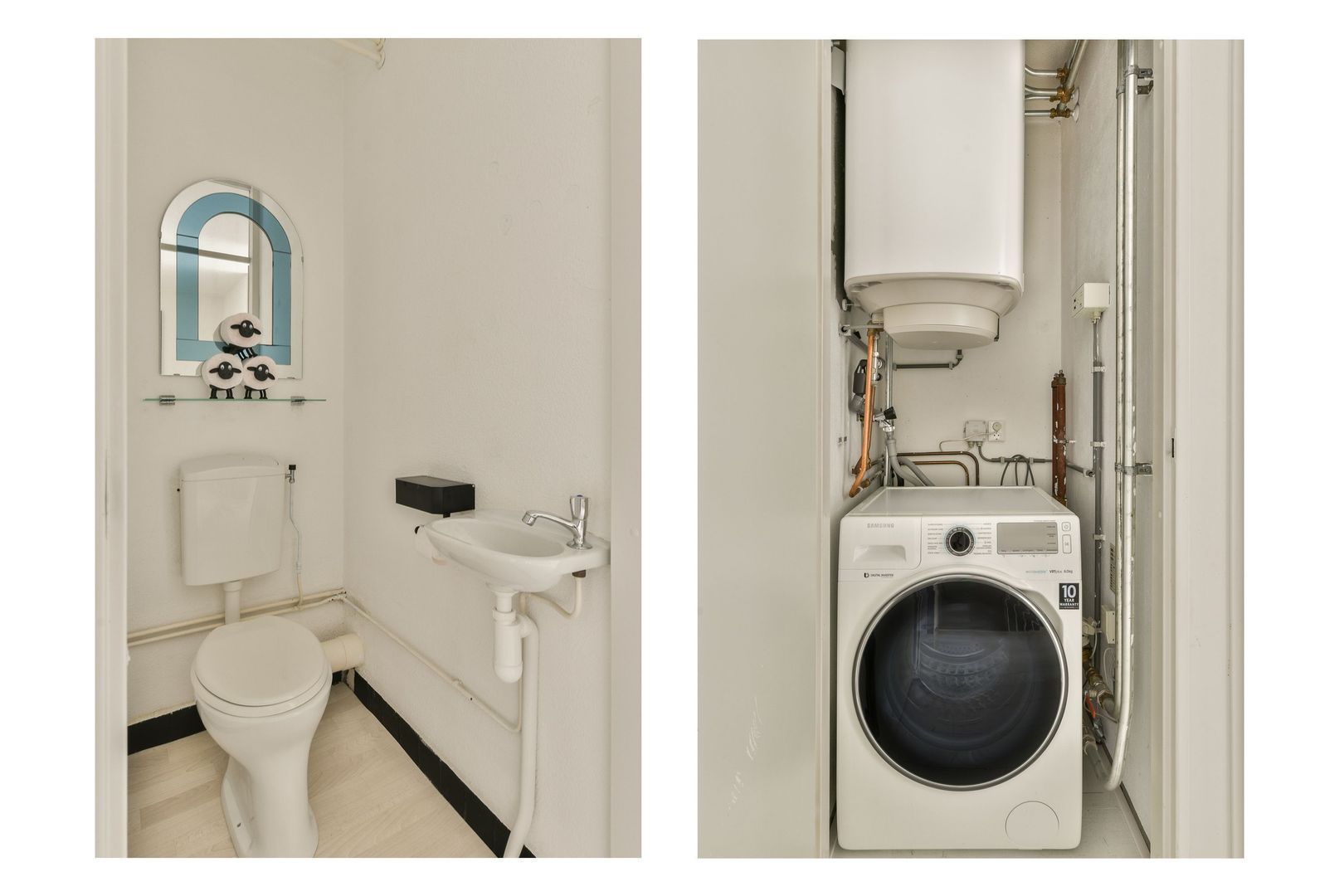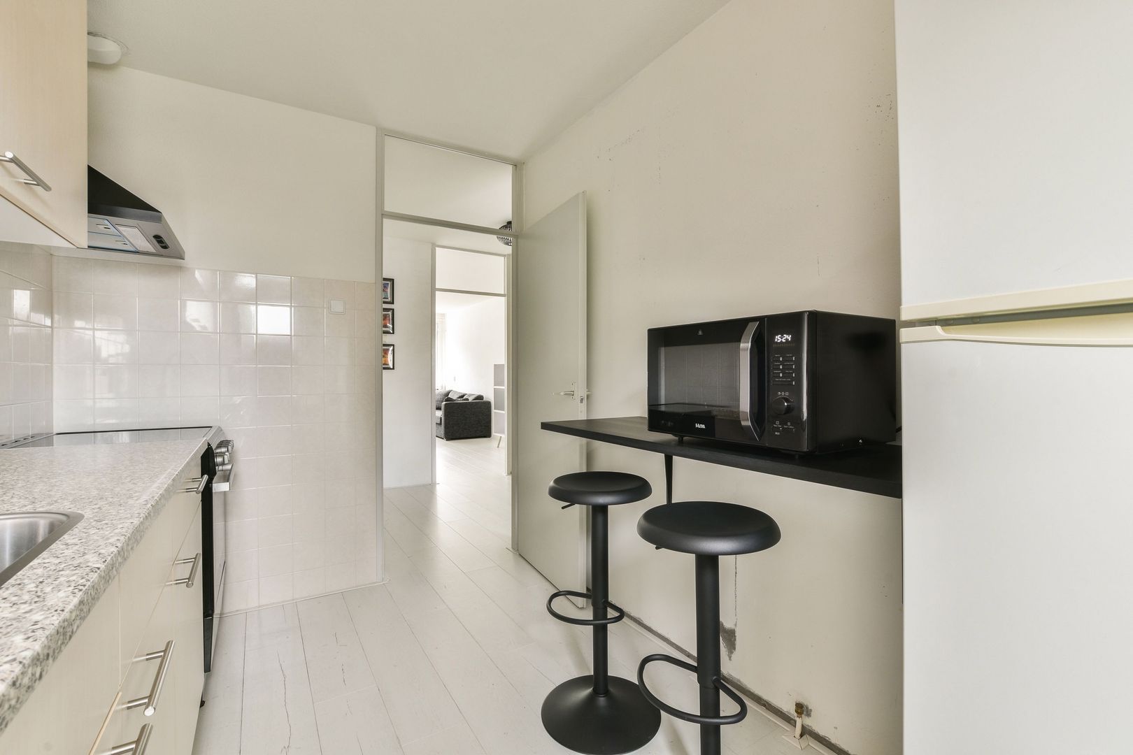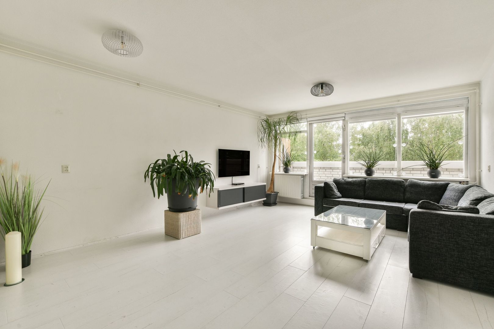 Overloop/hal, bergkast met wasmachine aansluiting en 80 liter boiler. Toilet met fonteintje. Ruime woonkamer van ca. 24 m2 met grote raampartij en toegang naar het brede balkon van bijna 6,5 m2. Keuken van ca. 7,5 m2 met