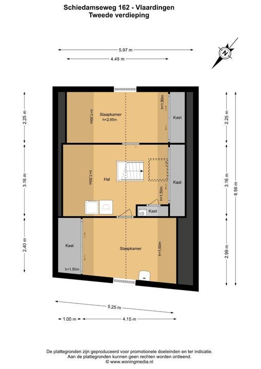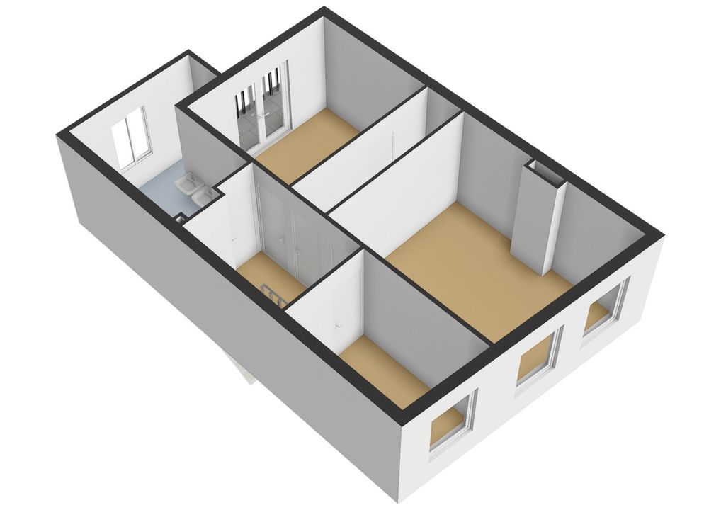 Ruime overloop met diverse gebruiksmogelijkheden, bergruimte en groot dakraam. Op de overloop is de Wasmachine aansluiting aanwezig en in een kast zit de CV-combiketel. Aan achterzijde is een slaapkamer met een vloeroppervlakte van ca. 10 m2 met een schuifkasten aan één zijde. Aan voorzijde eveneens een slaapkamer. Deze slaapkamer is nog wat groter dan de kamer aan achterzijde en heeft naast een schuifkast ook een wastafel.