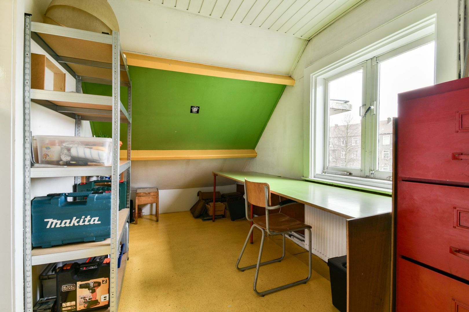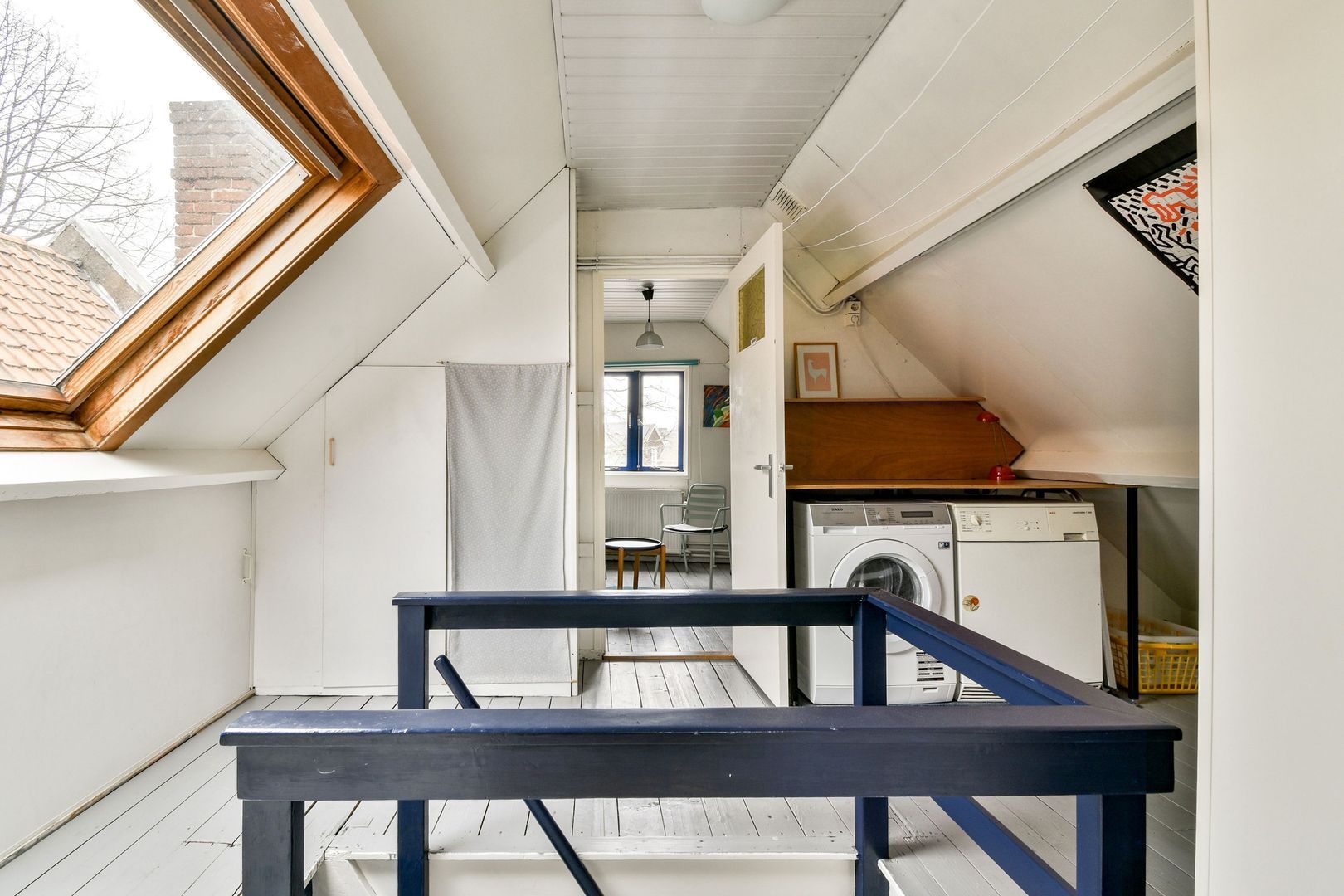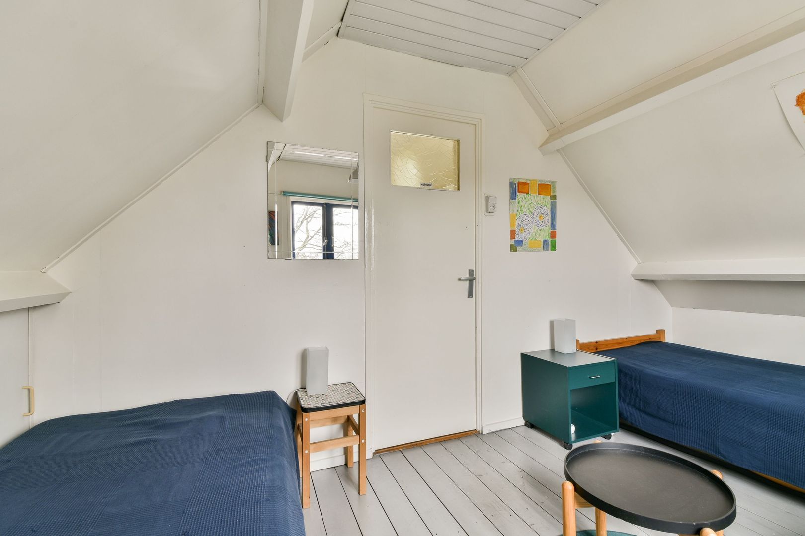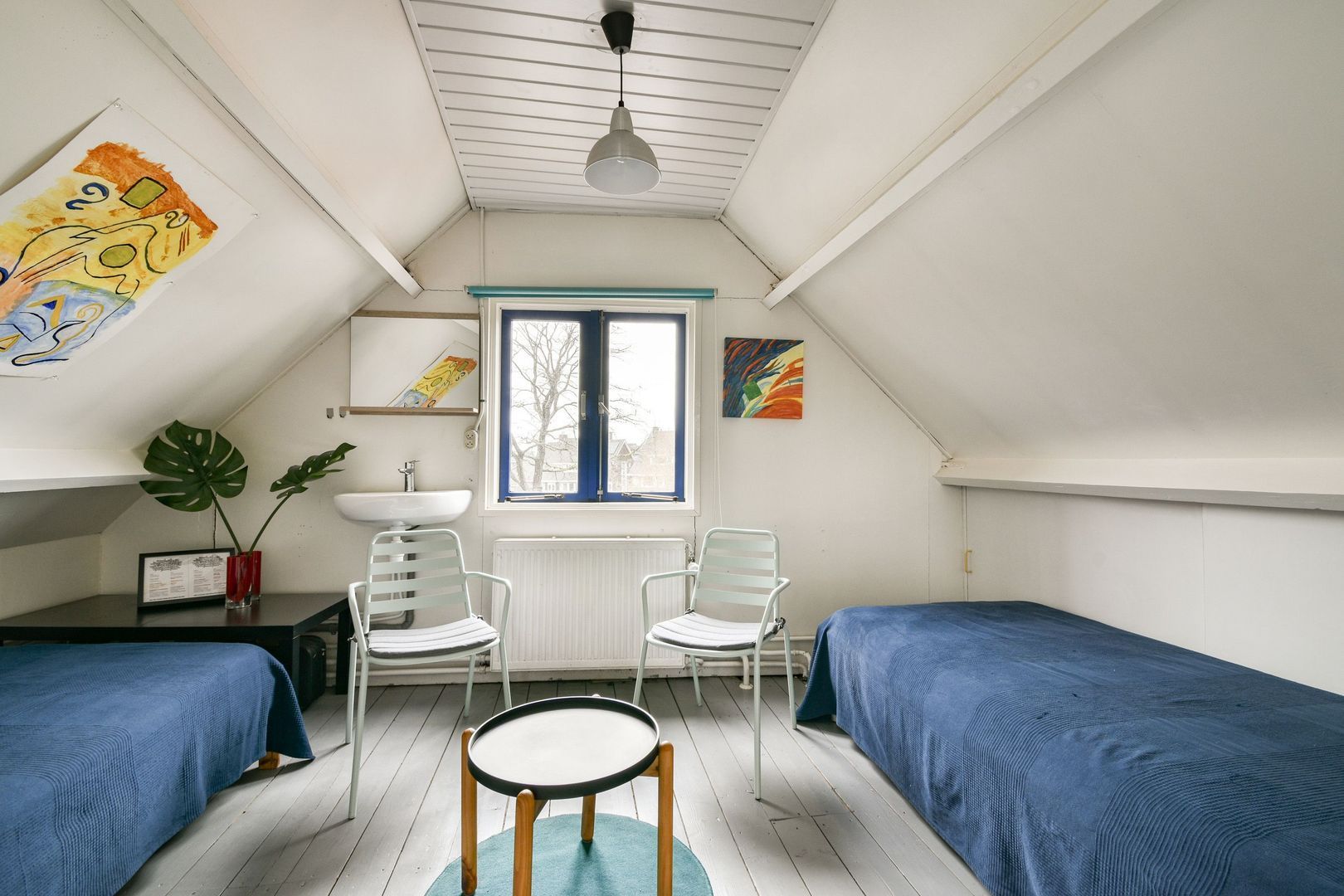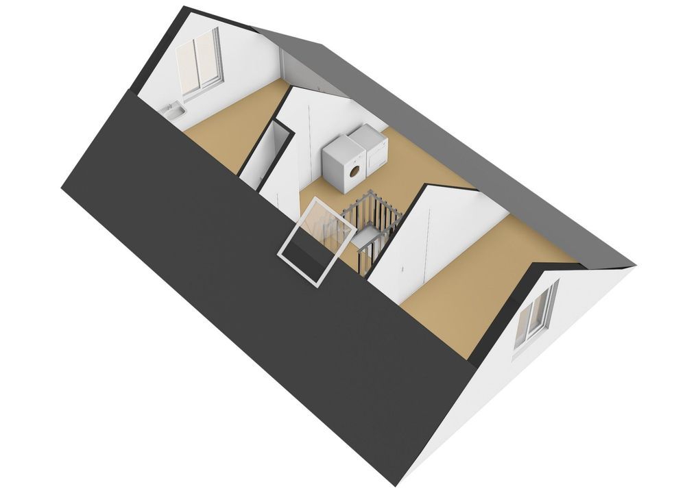 Ruime overloop met diverse gebruiksmogelijkheden, bergruimte en groot dakraam. Op de overloop is de Wasmachine aansluiting aanwezig en in een kast zit de CV-combiketel. Aan achterzijde is een slaapkamer met een vloeroppervlakte van ca. 10 m2 met een schuifkasten aan één zijde. Aan voorzijde eveneens een slaapkamer. Deze slaapkamer is nog wat groter dan de kamer aan achterzijde en heeft naast een schuifkast ook een wastafel.