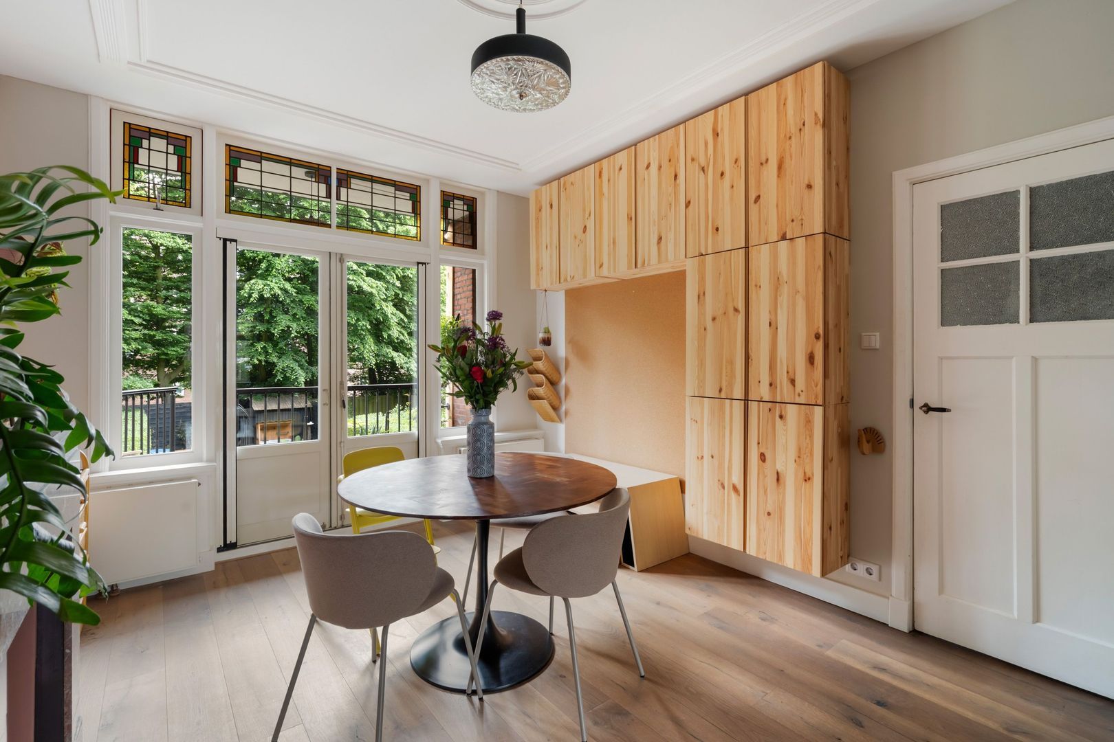 De woonkamer van 42 m2 is voorzien van een mooie parketvloer, gestucte wanden en plafond en mooie glas-in-lood en suite deuren naar de aansluitende eetkamer. De keuken en badkamer zijn in 2016 geheel vernieuwd en ruim en smaakvol uitgevoerd. Ook is er volop aandacht aan verduurzaming besteed, met HR ++ dubbel glas, plafondisolatie en 8 zonnepanelen. De woning heeft hierdoor energielabel B. De authentieke details, zoals paneeldeuren, ornamentenplafond en marmerlook lambrisering zijn behouden gebleven en/of gerestaureerd. De ligging in de populaire Oostwijk nabij de metro en stadspark ‘t Hof is ideaal. Kom kijken en laat je overtuigen door deze moderne woning met authentieke sfeer.