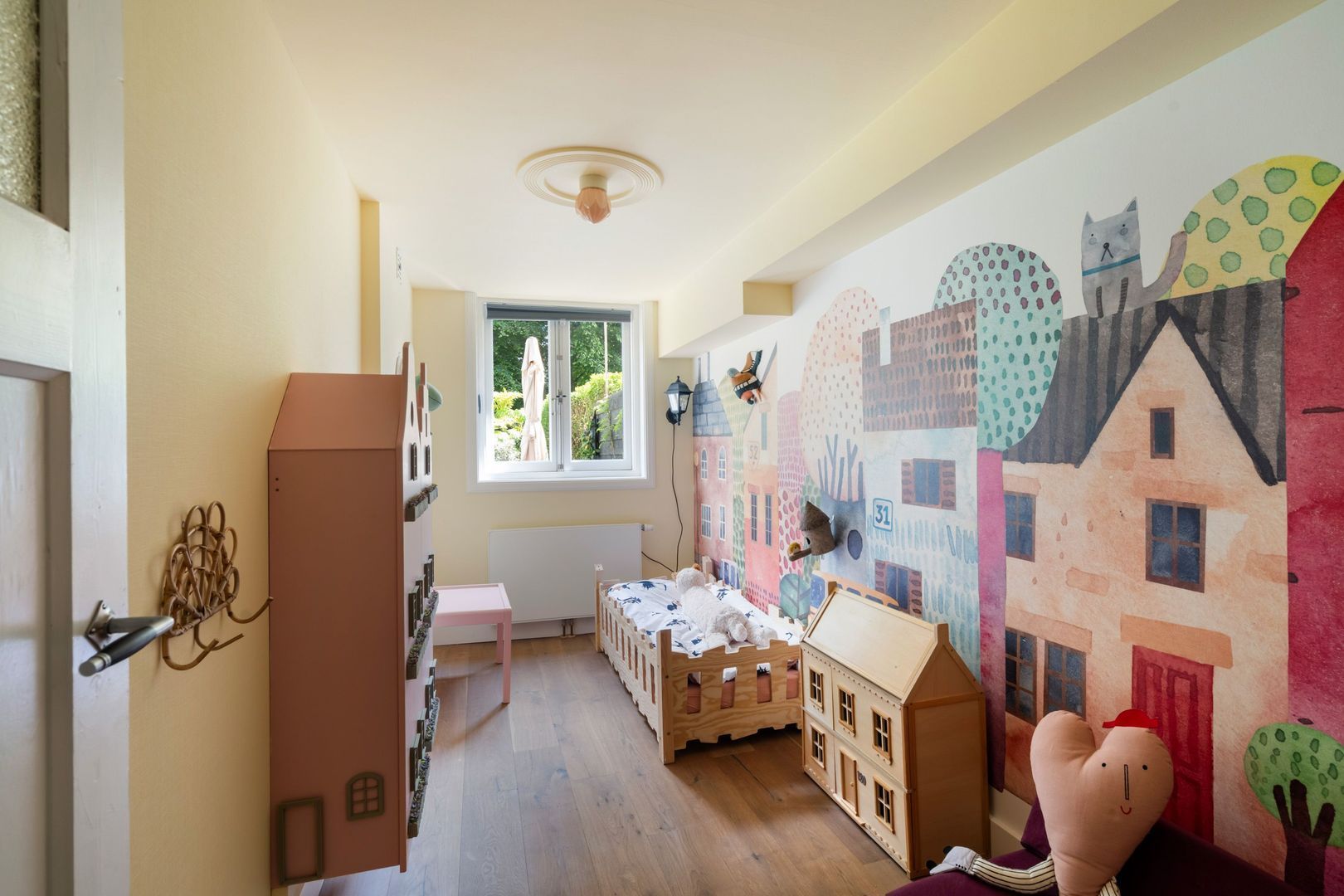 Aan de tuinzijde ligt de hoofdslaapkamer van 17 m2 met openslaande deuren naar de tuin. Ook deze is uitgevoerd met gladstuc wanden en plafond en mooie parketvloer (die ook in de andere slaapkamers ligt).