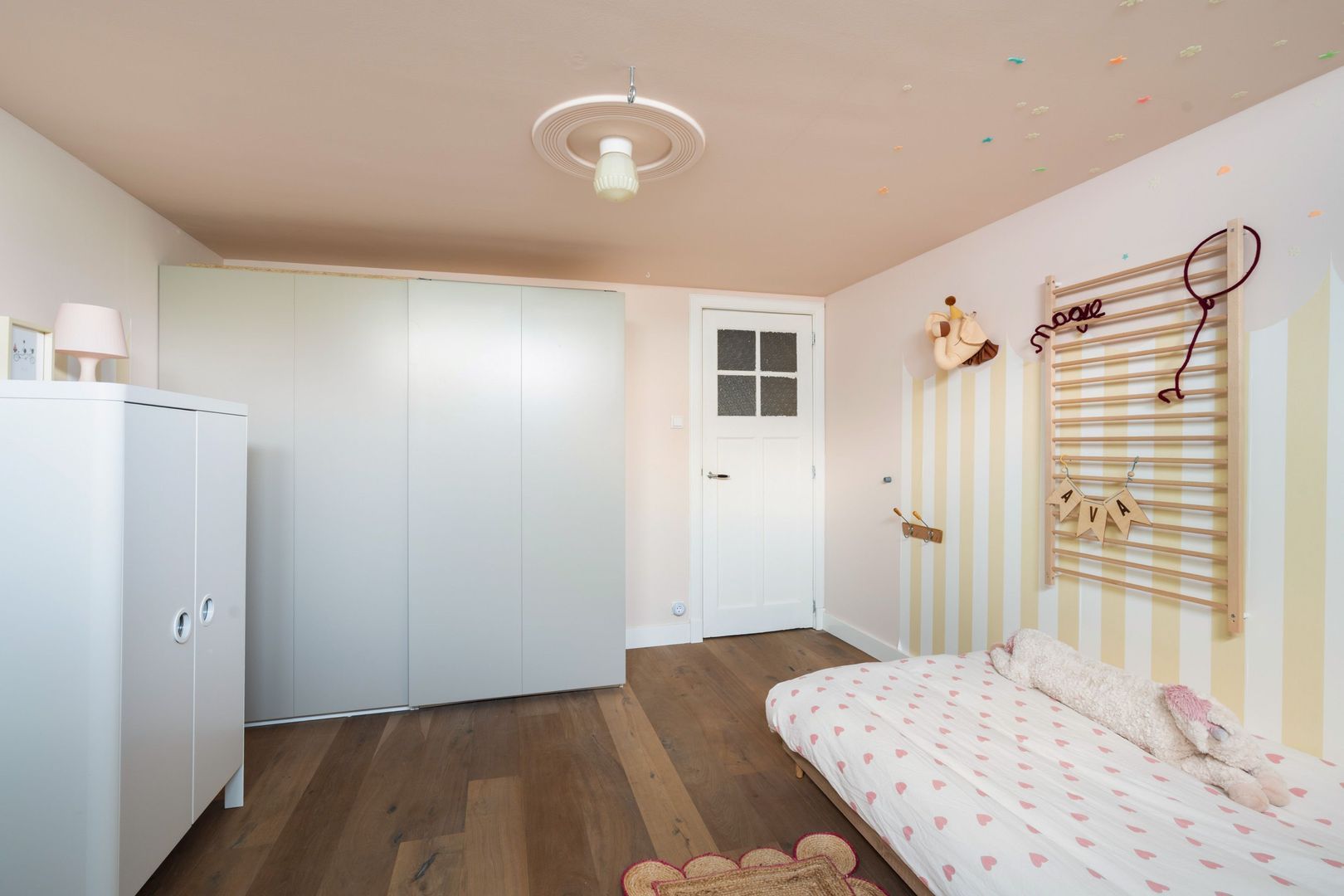Hiernaast ligt de 3e slaapkamer van 8 m2. Ook deze is uitgevoerd met gladstuc wanden en plafond en mooie parketvloer. Tevens een elektrisch screen aanwezig.