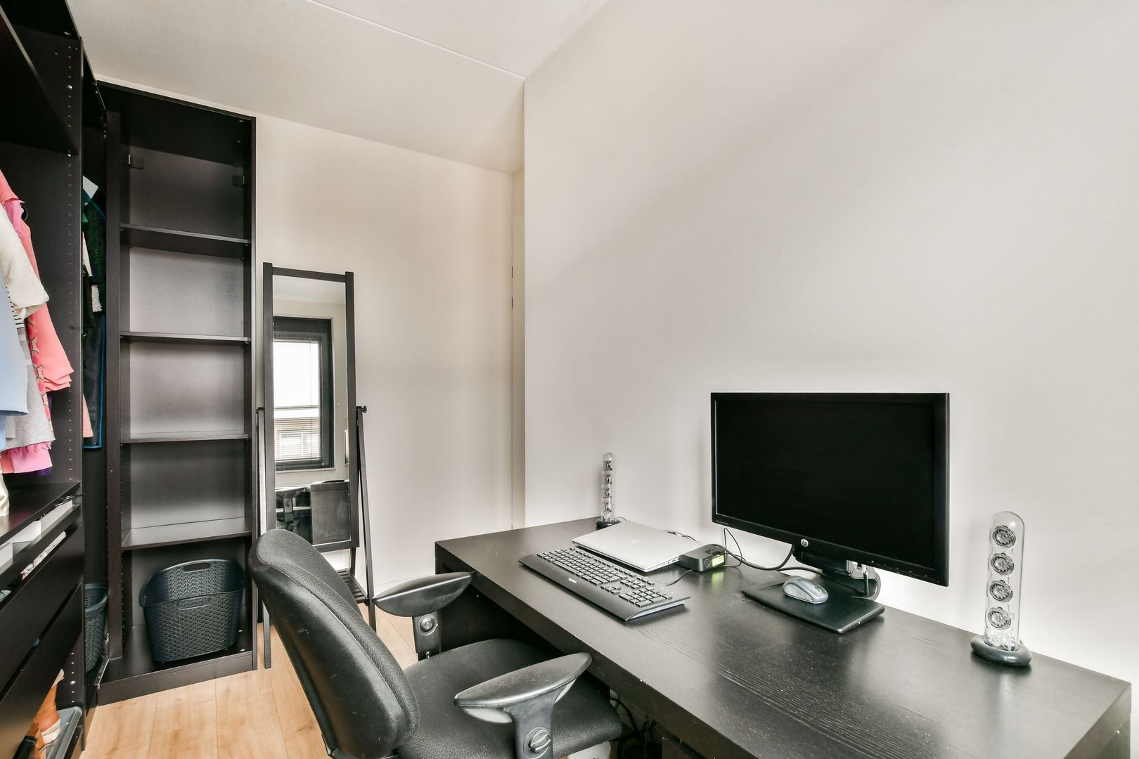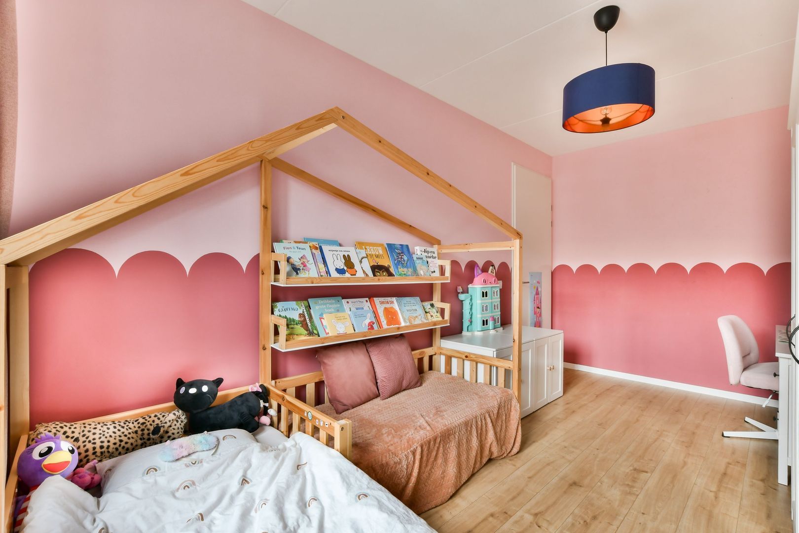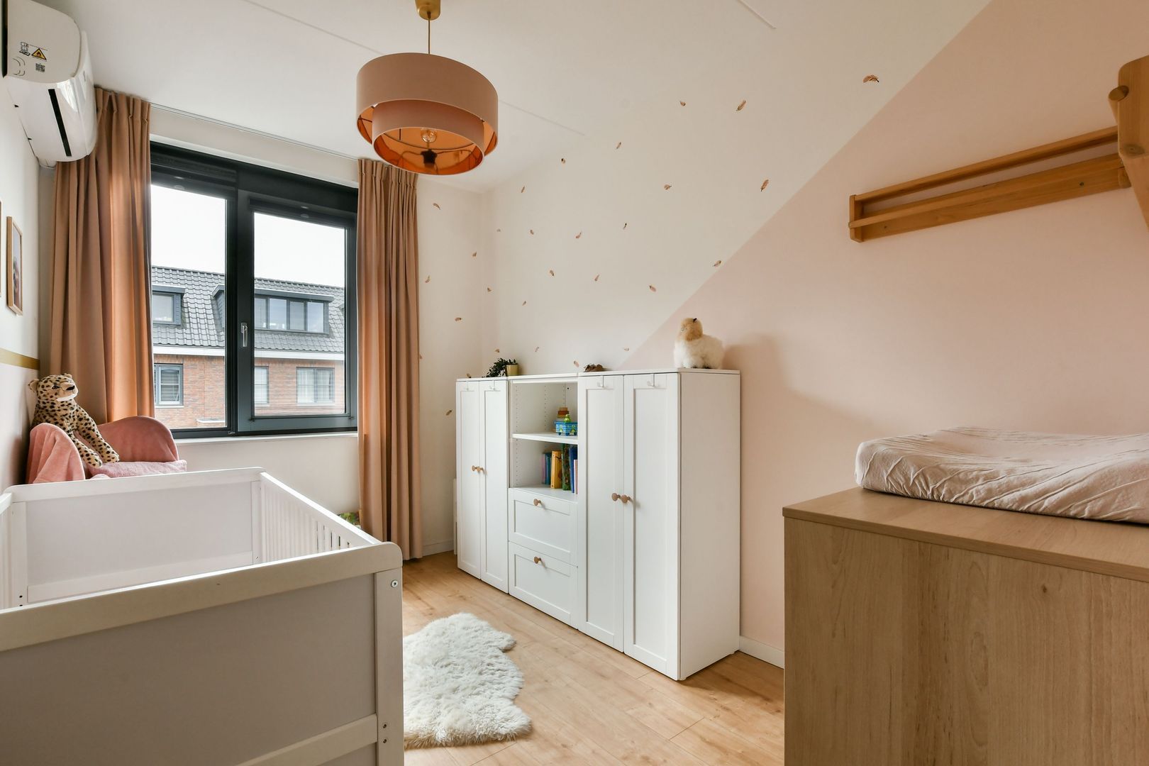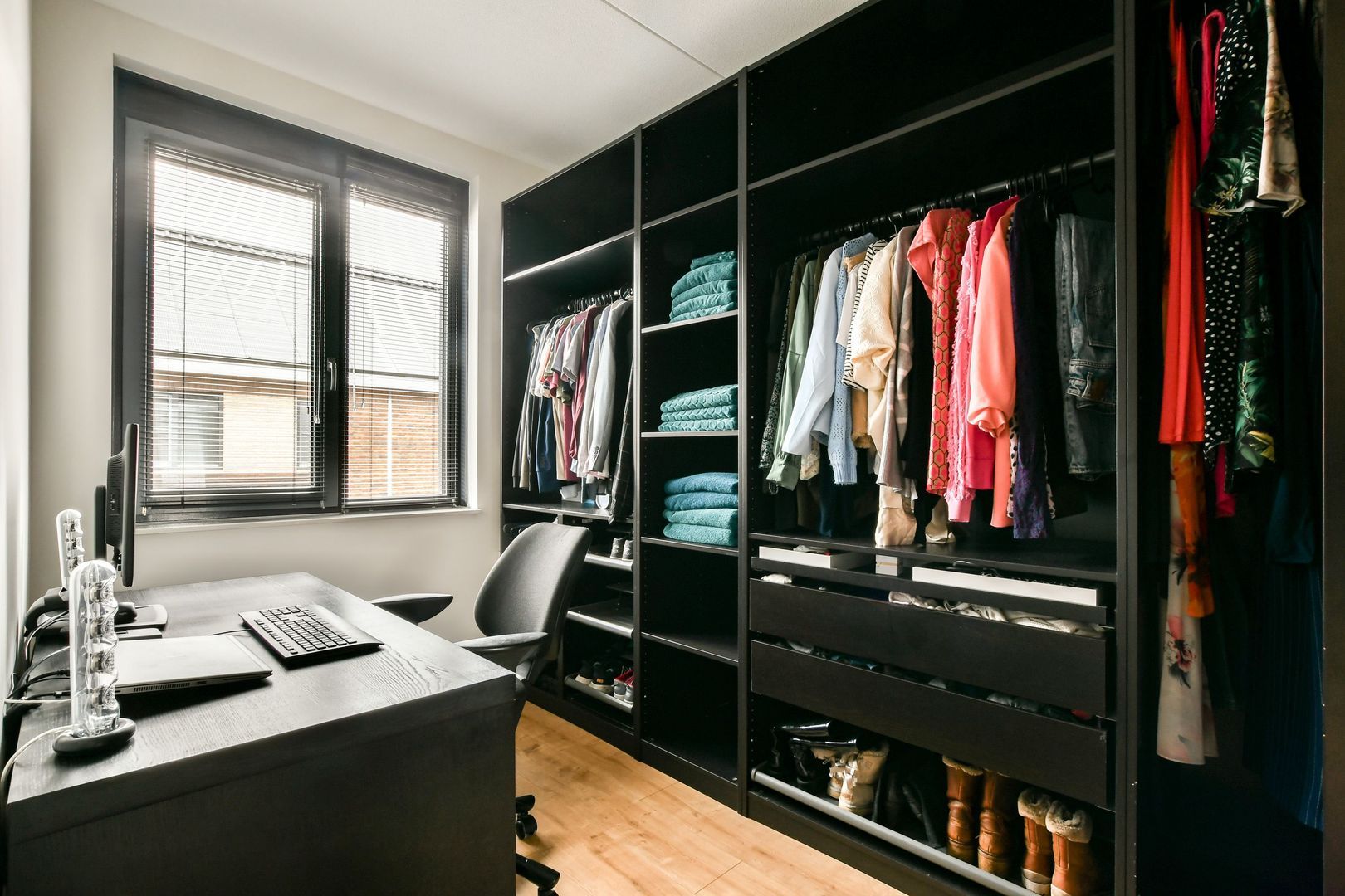 Ingedeelde zolder met zolderkamer met ca 22 m2 vloeroppervlakte, airco die kan koelen en verwarmen, laminaatvloer, bergruimte in de schuine dakvlakken en dakkapel met kunststof kozijnen voorzien van elektrisch rolluik. Overloopruimte met dakraam en aansluiting voor een wasmachine en droger.