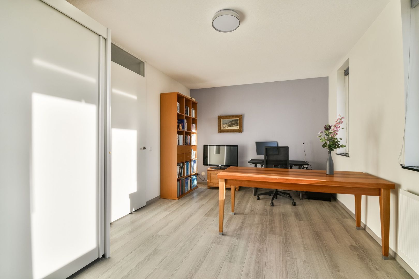 De gehele verdieping is voorzien van een mooie laminaatvloer en glad gestucte wanden.