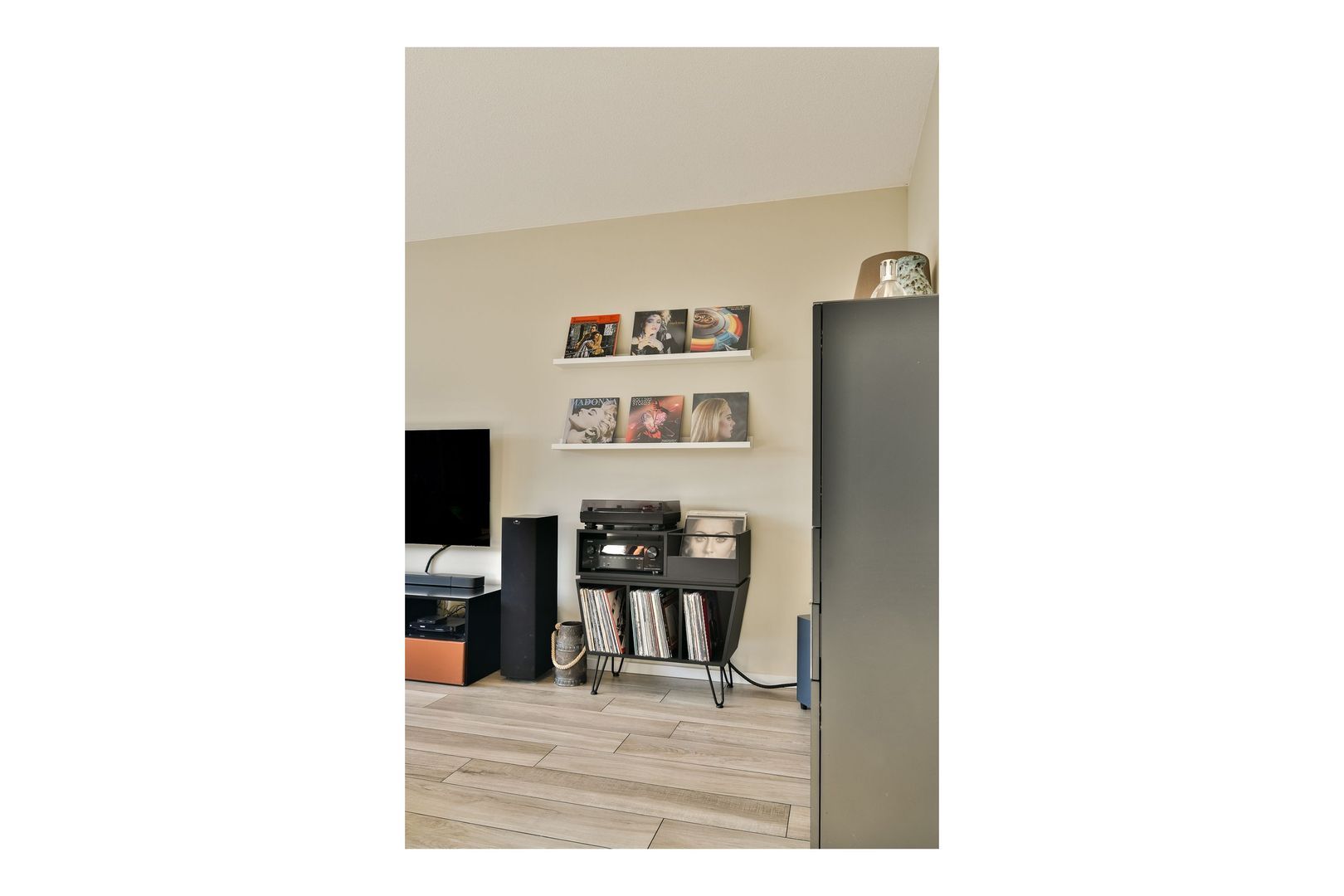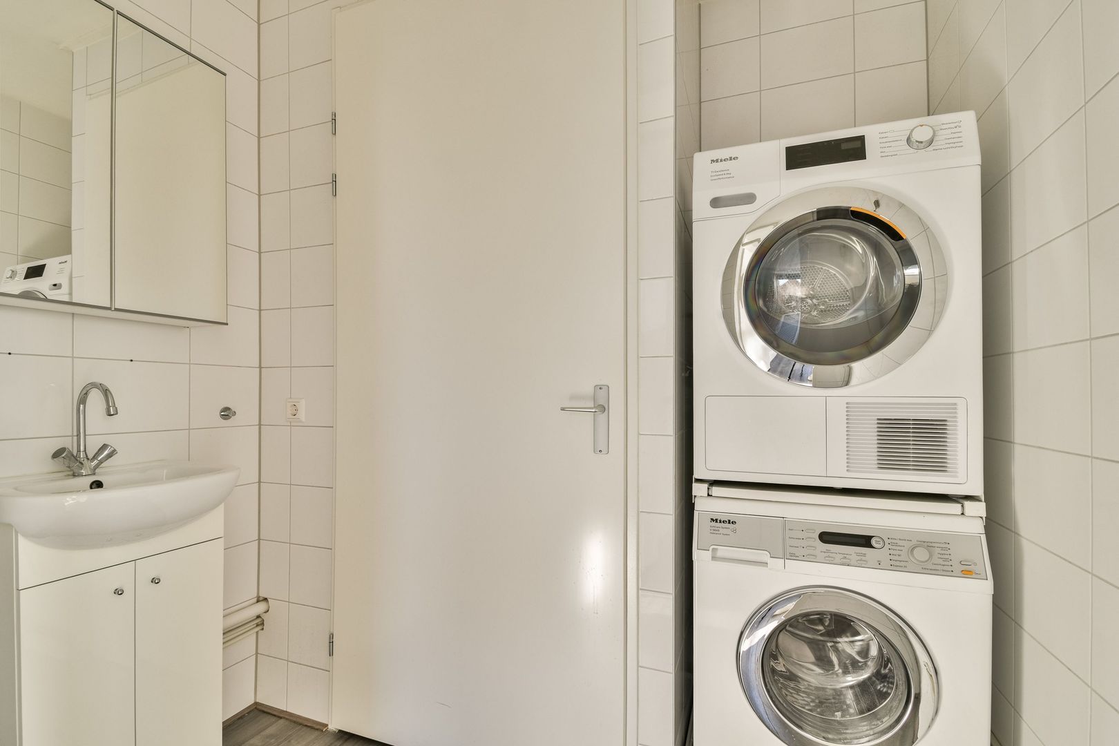 De gehele begane grond is voorzien van een betegelde vloer met houtmotief en vloerverwarming, deels afgewerkt met fijn structuurwanden en deels met glad stucwerk.