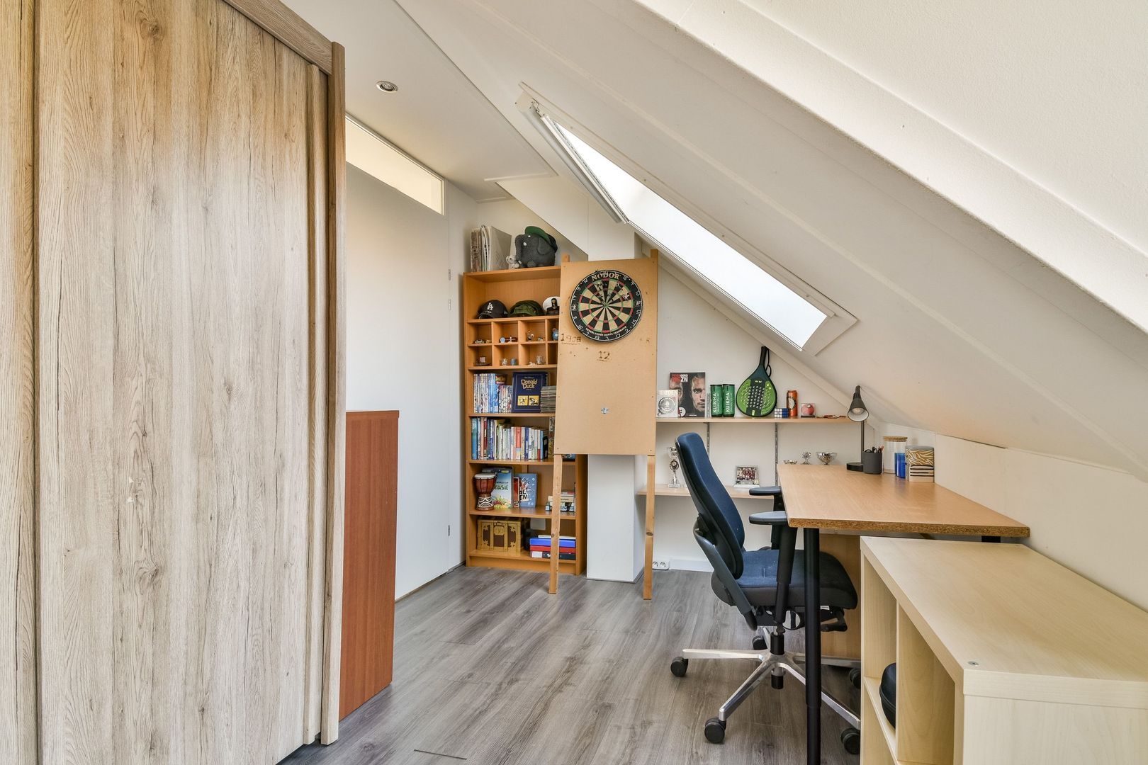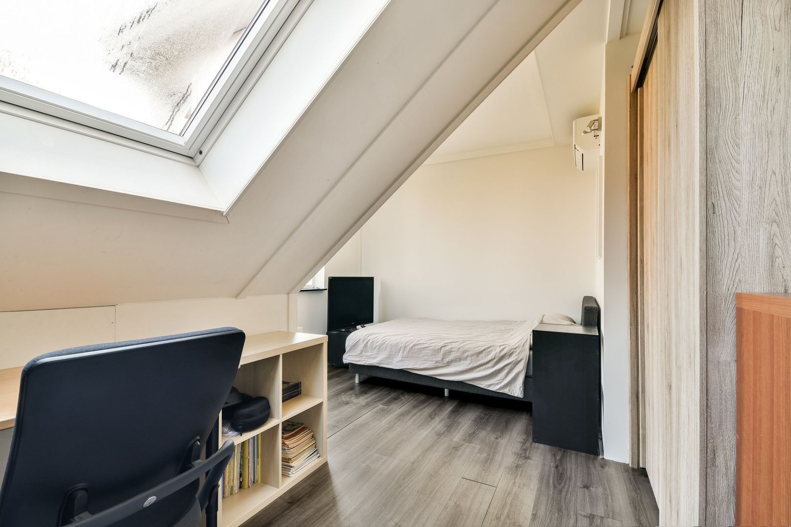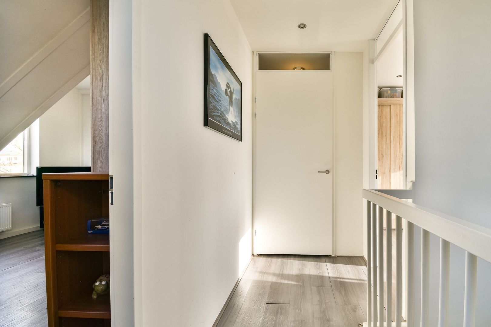 De gehele verdieping is voorzien van een mooie laminaatvloer en glad gestucte wanden.