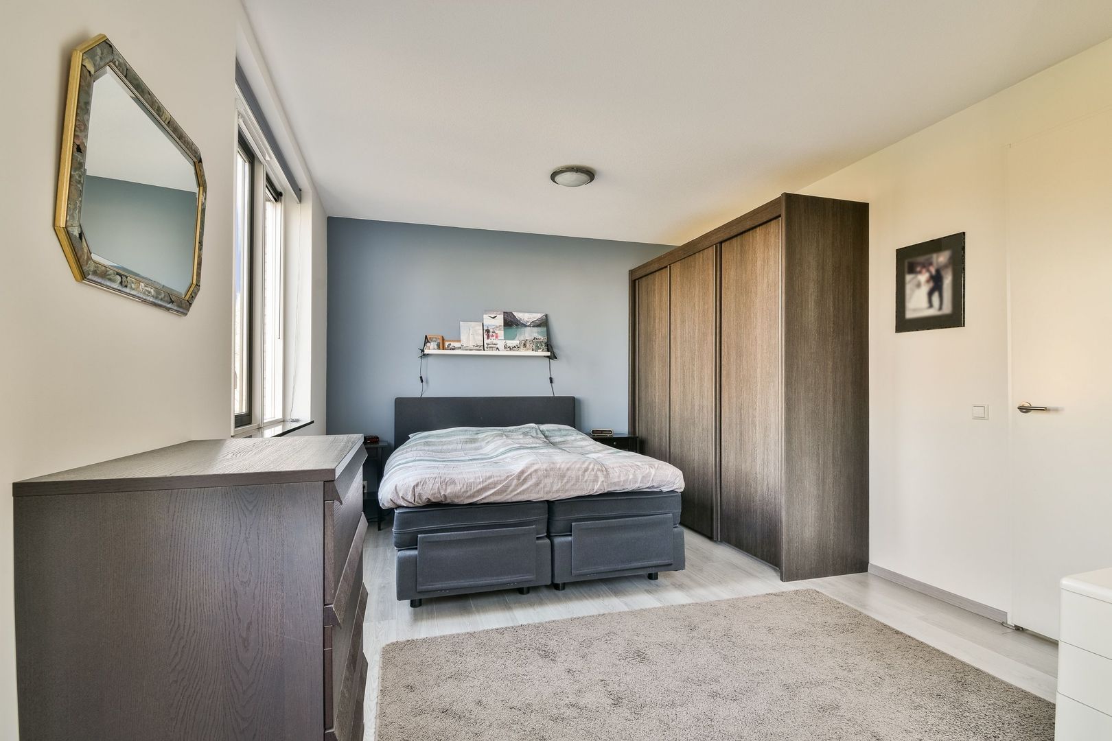 Hoofdslaapkamer van ca. 18,7 m² over de volledige breedte van de woning en een voorslaapkamer van ca. 17,6 m² met drie ramen, welke eenvoudig is te splitsen in 2 kamers.