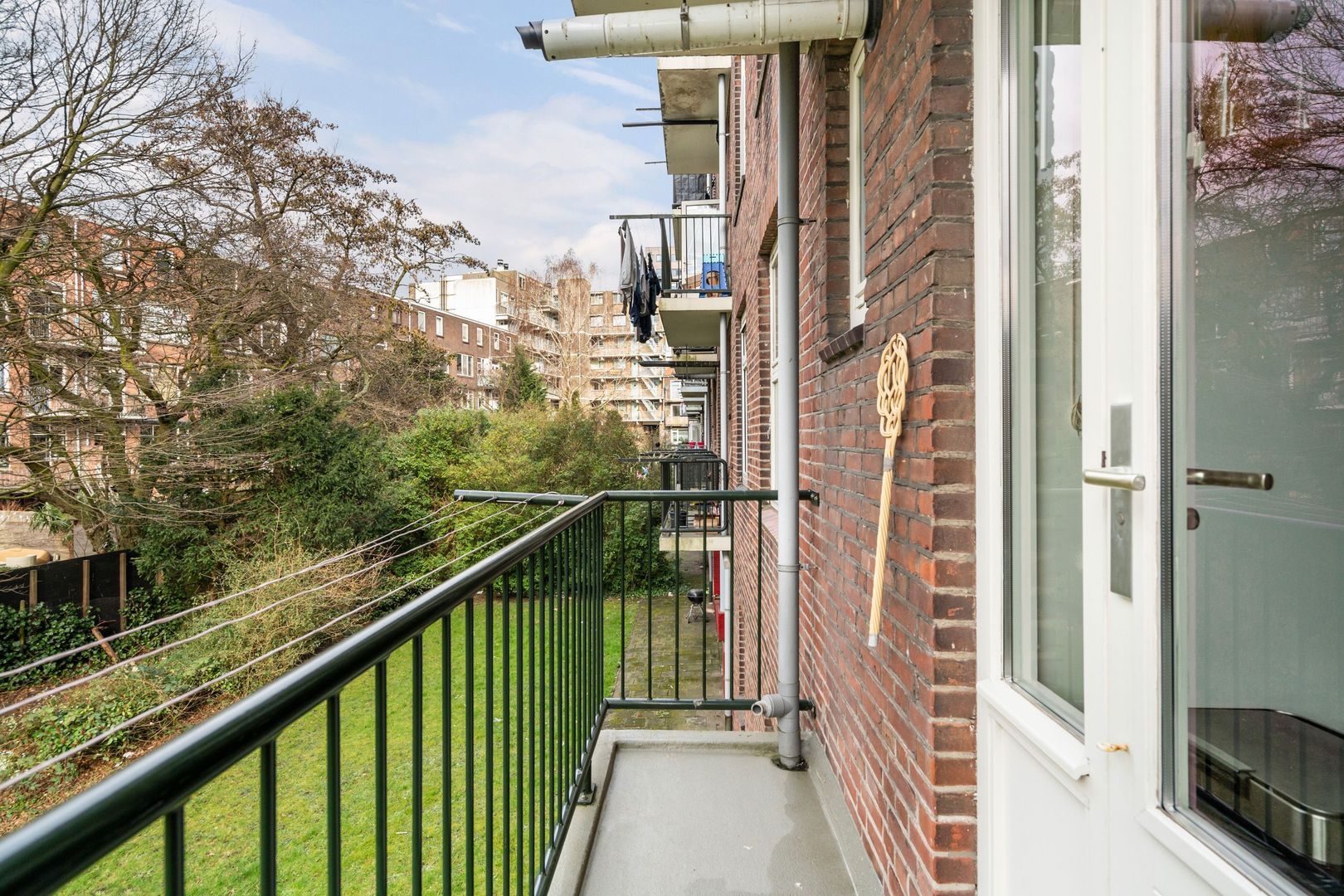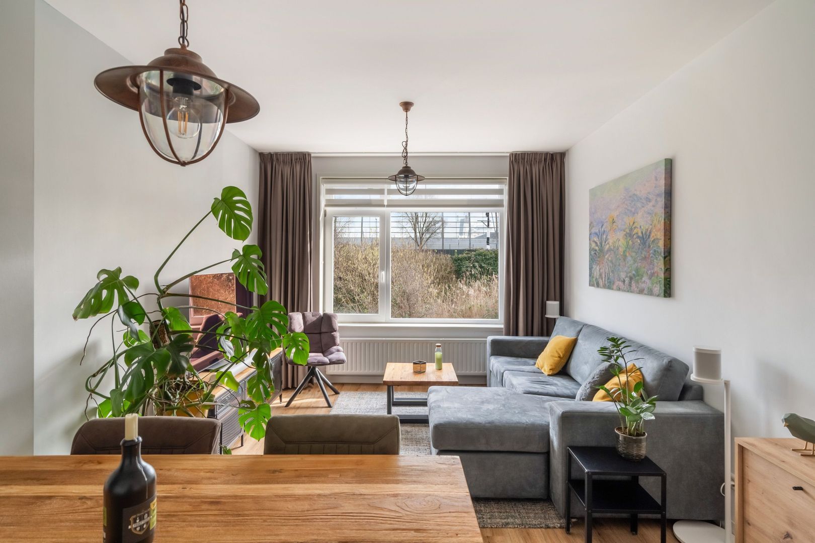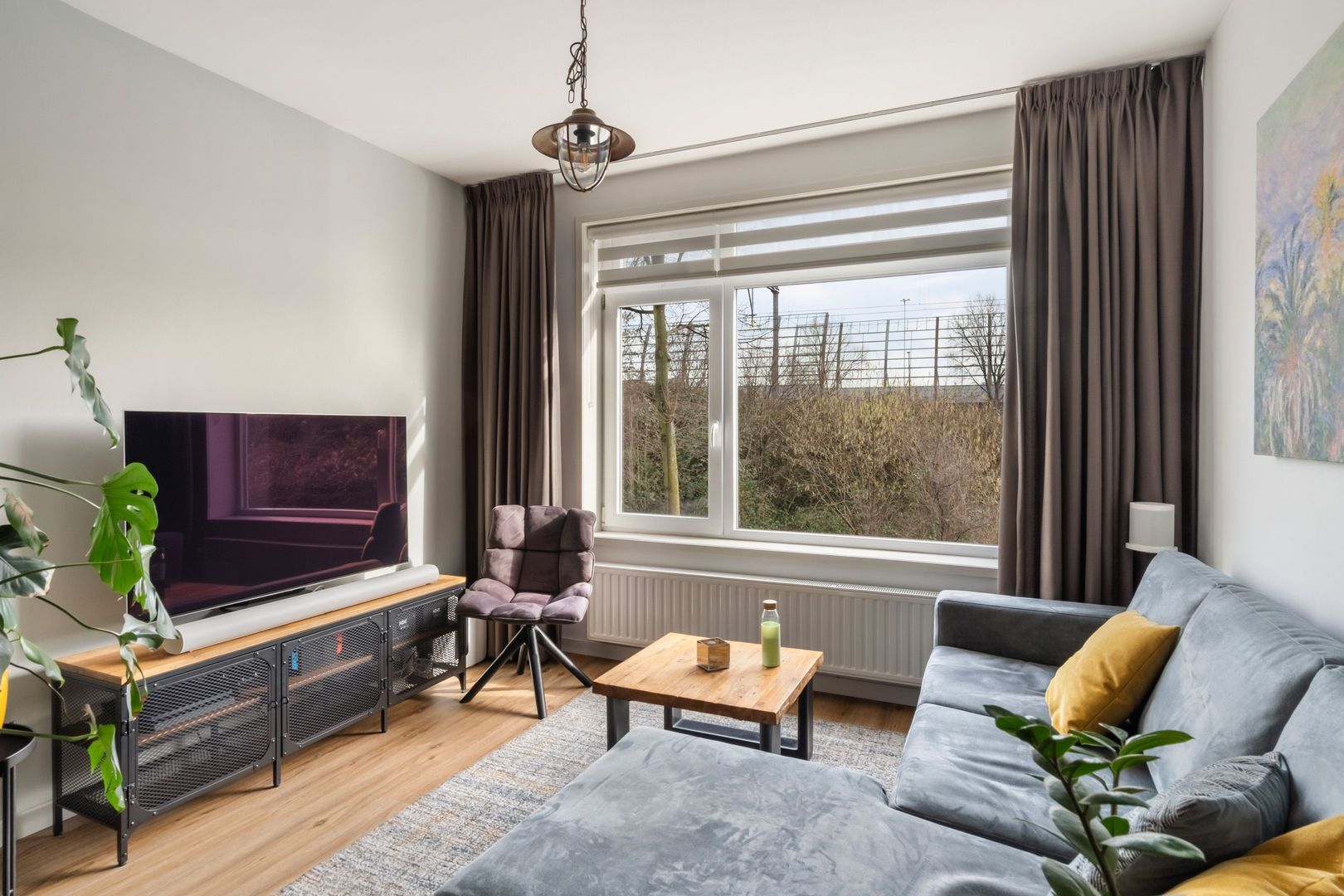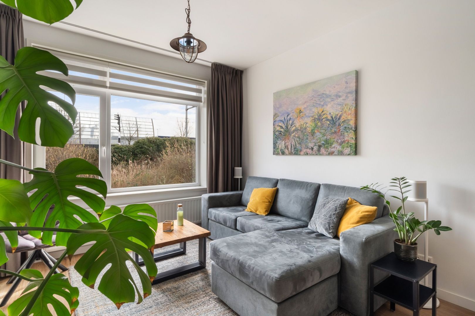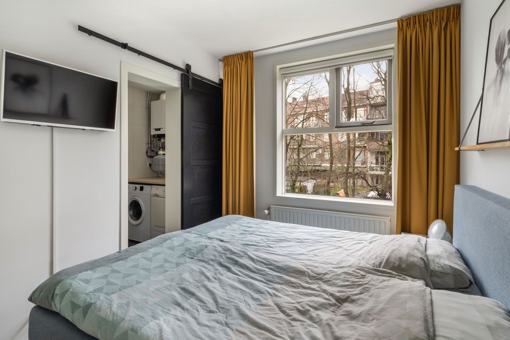 Woonkamer van bijna 19 m2 met toegang tot de slaapkamer aan achterzijde. Deze slaapkamer is ruim 11 m2 groot en heeft een dubbele vaste kast. De aan de slaapkamer grenzende moderne badkamer is geheel betegeld en uitgevoerd met een brede douche met glazen schuifdeur en een wastafelmeubel. Ook de wasmachine, droger en CV-ketel zijn in de badkamer ondergebracht.