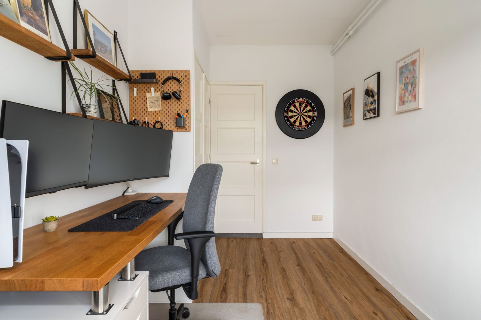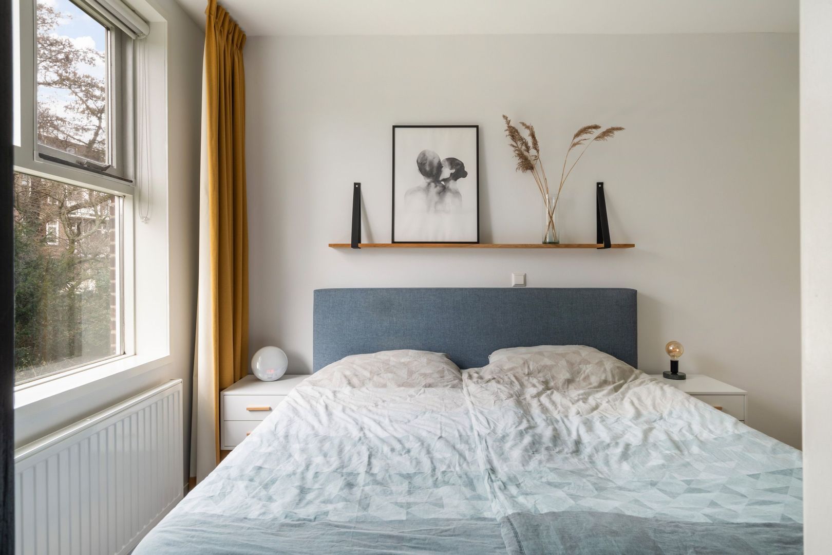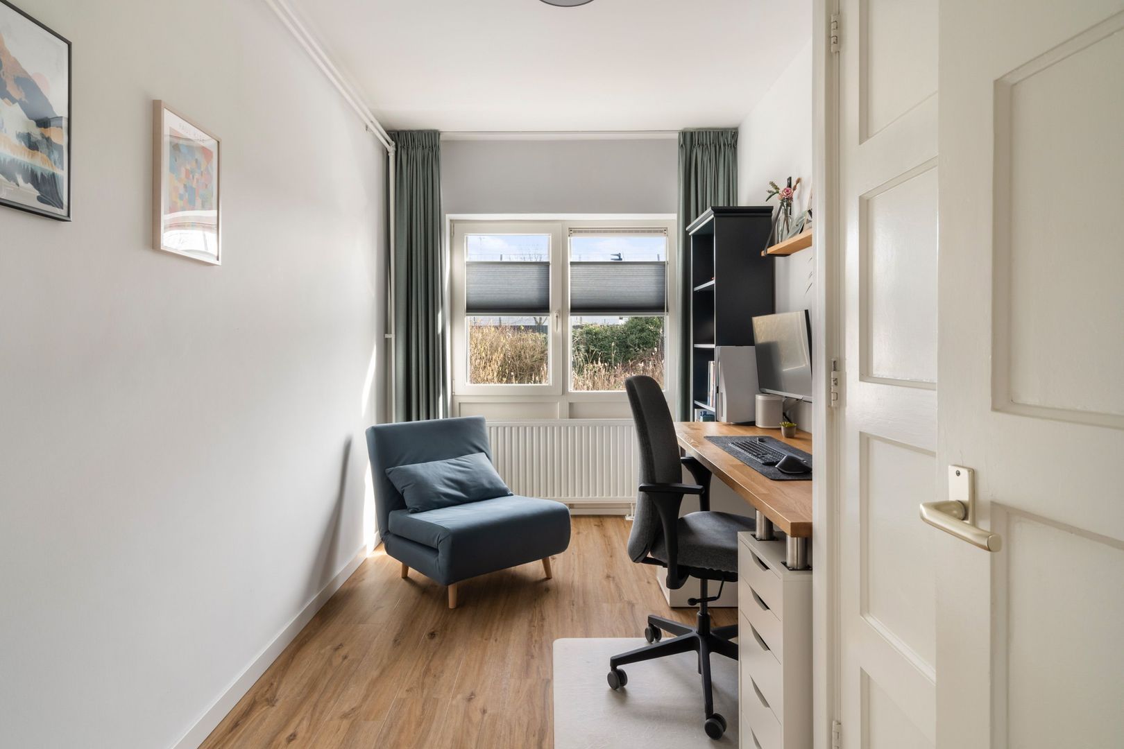 De tweede slaapkamer van ruim 10 m2 ligt aan de voorzijde van de woning en heeft een dubbele vaste kast.