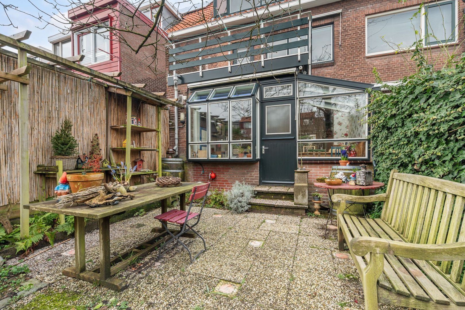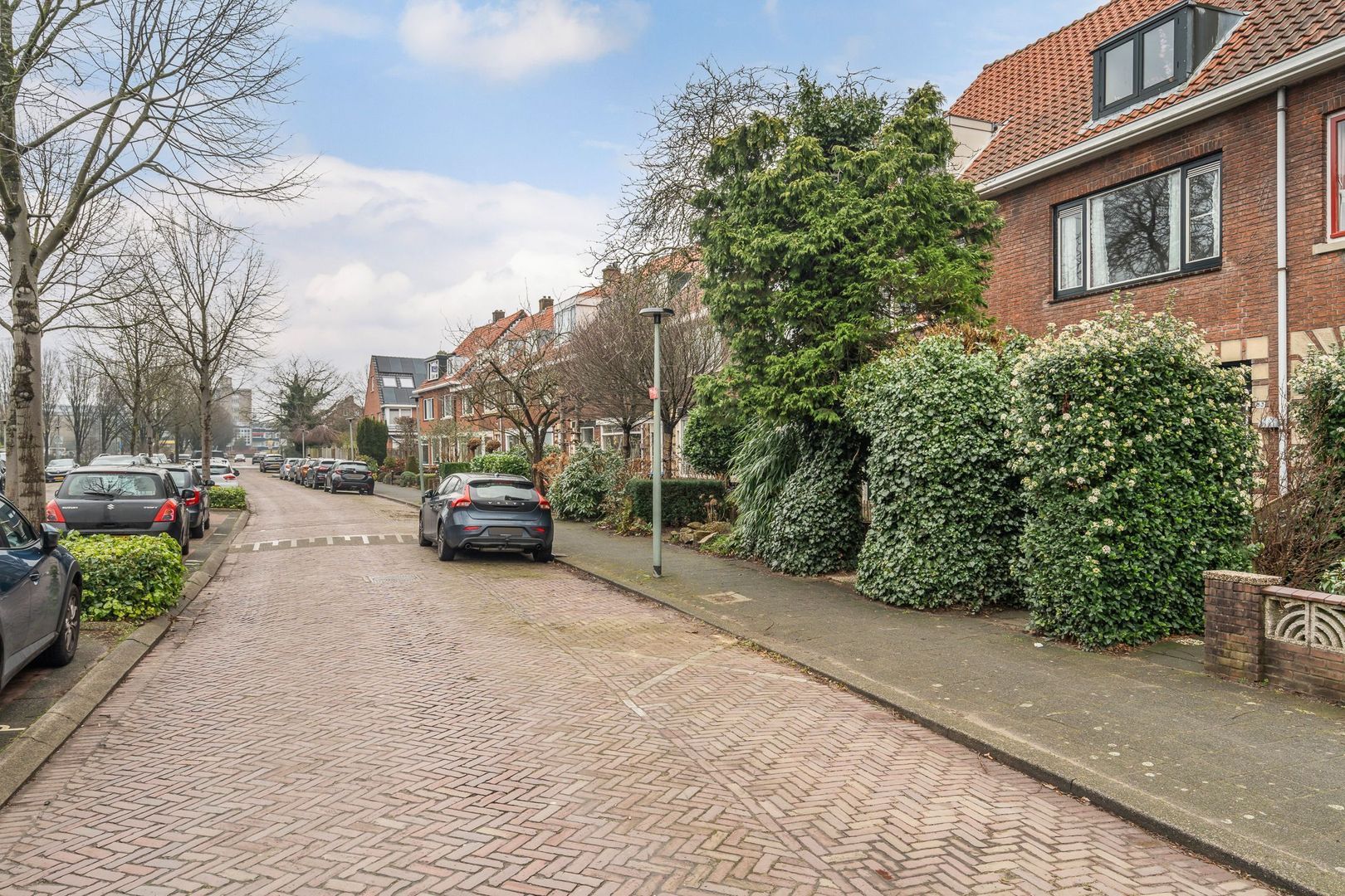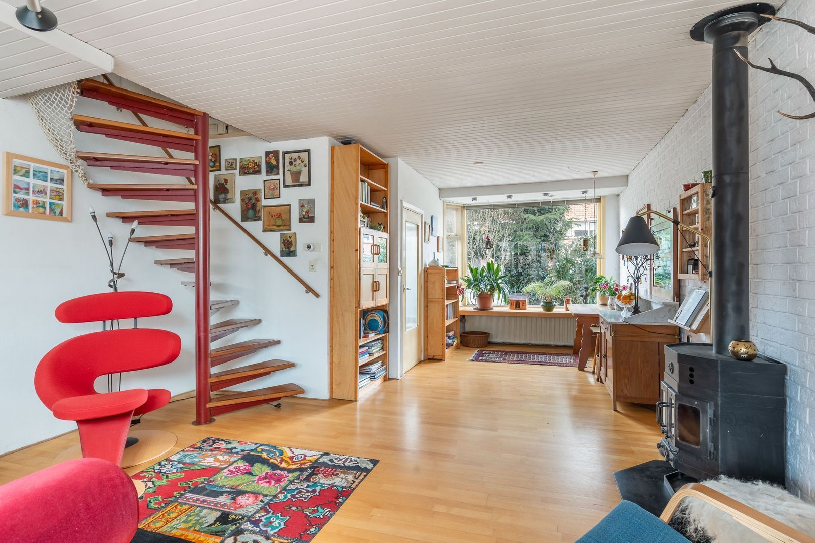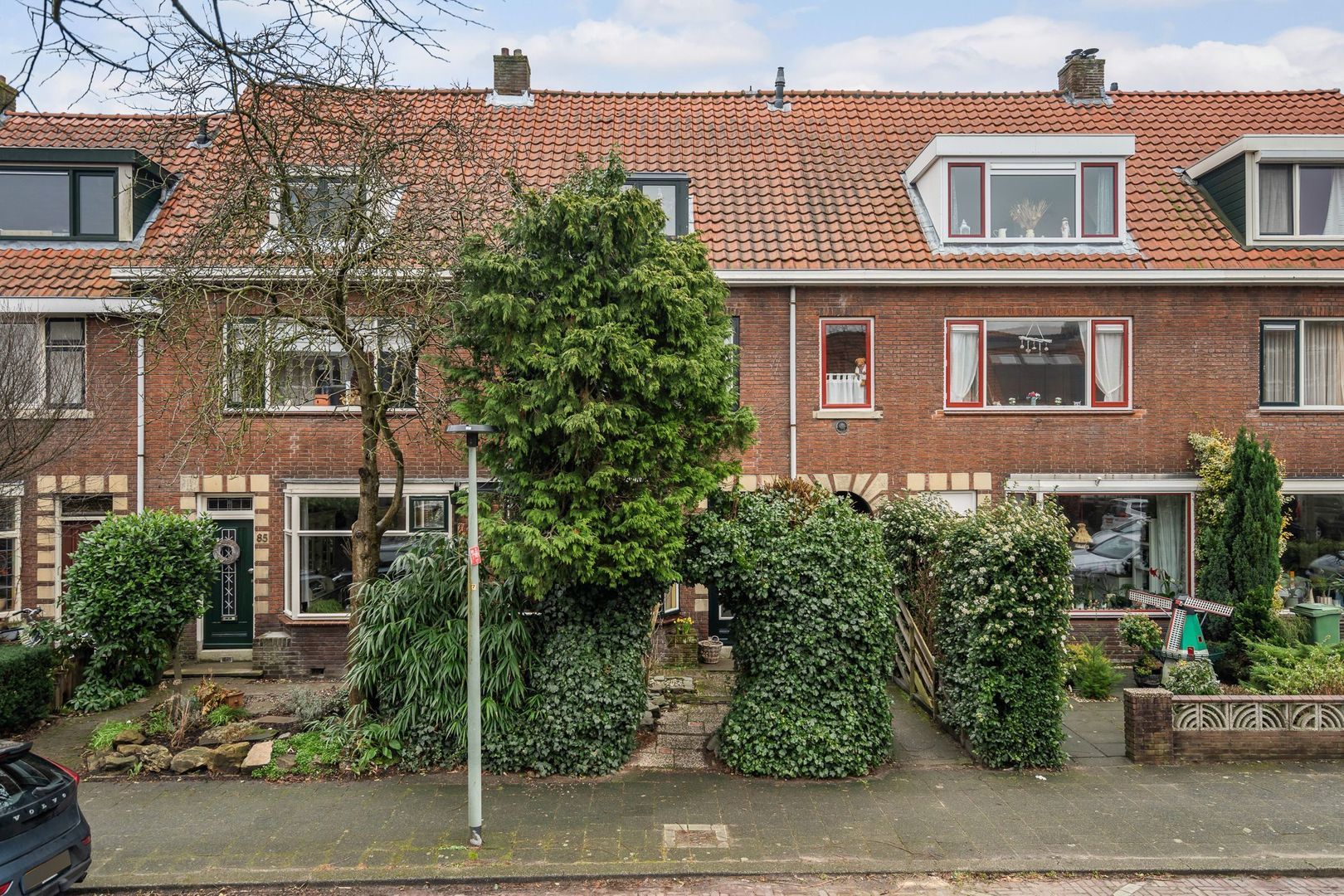 Wat een lekker ruime eengezinswoning is deze 5-kamerwoning met een ruim 16 meter diepe tuin op het zuiden. De ligging aan de brede Sportlaan is ideaal, met veel parkeervoorzieningen voor een jaren dertig wijk. De woonkamer van 46 m² heeft een uitbouw met een serre, een ruime woonkeuken en een sfeervolle houtkachel. De woning is op de verdieping extra breed, omdat de verdieping deels boven de steeg loopt. De woning is netjes onderhouden en sommige zaken zijn in de jaren negentig aangepakt. Ook is er wat aan verduurzaming gedaan: zo zijn alle ramen voorzien van dubbel glas en is de kruipruimte geïsoleerd met schelpen.
