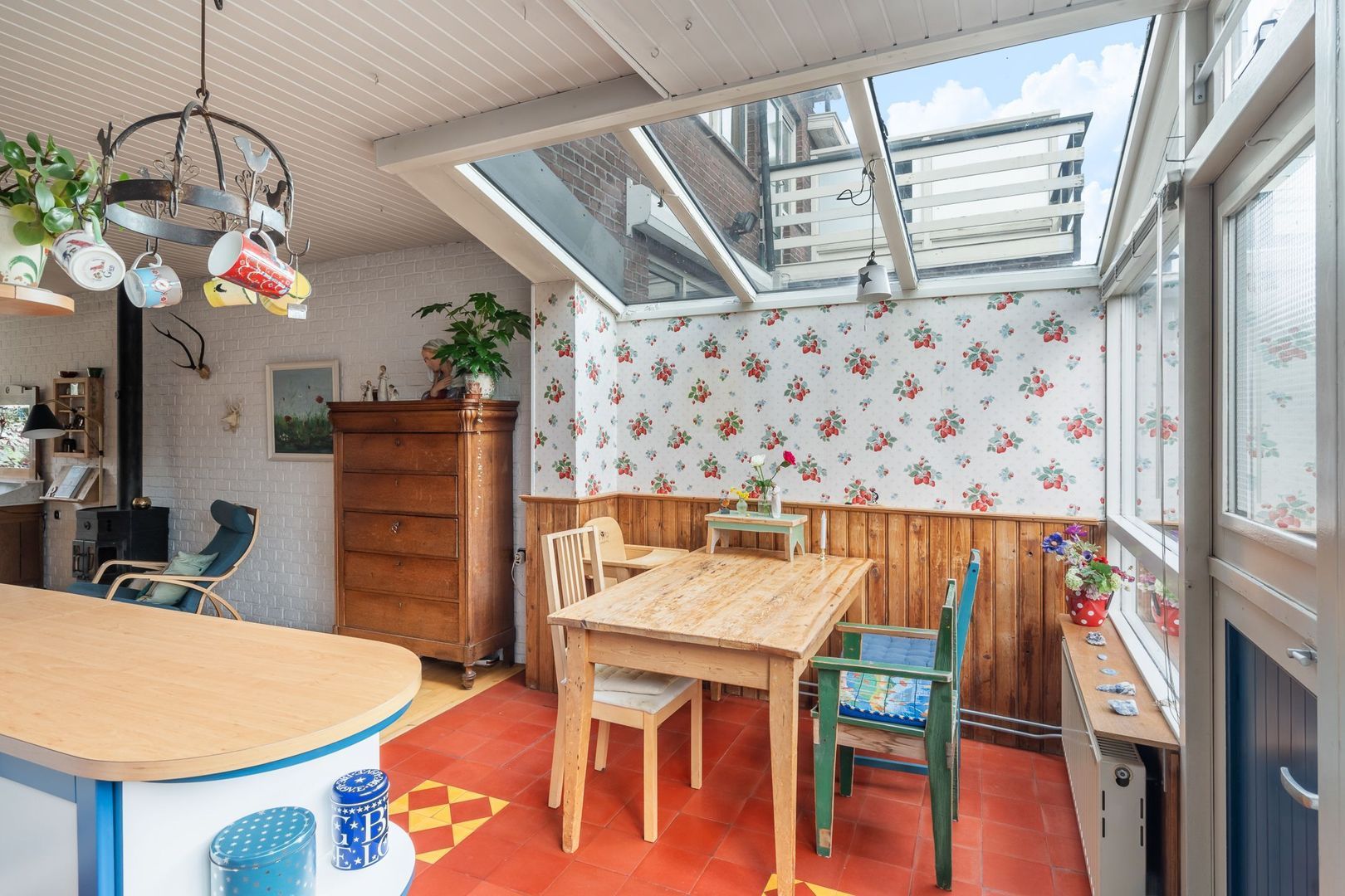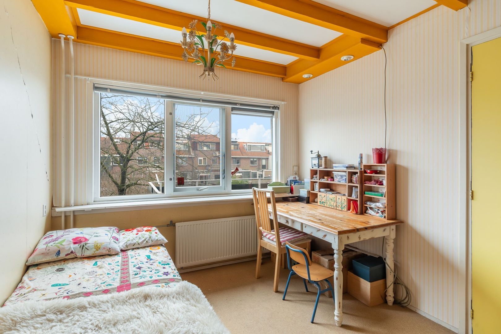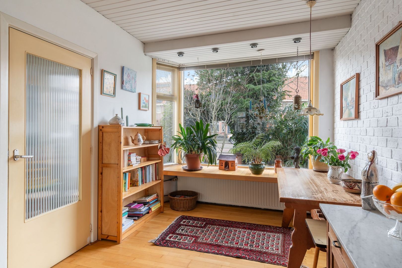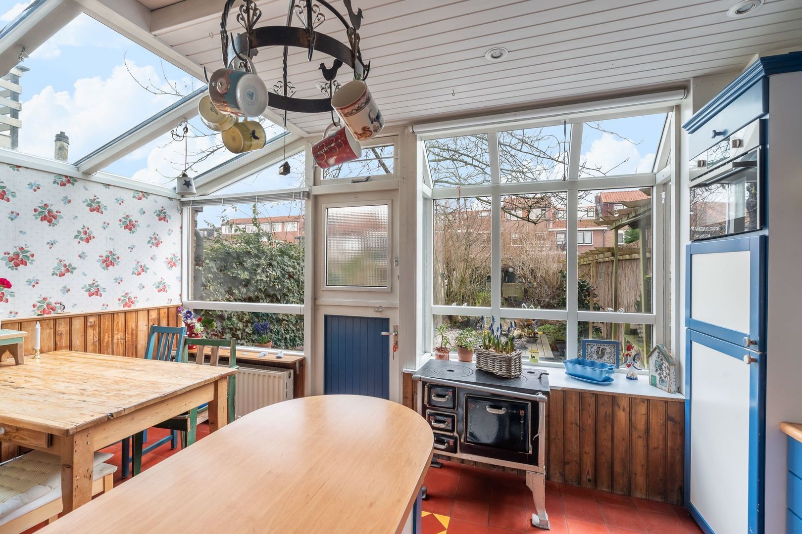 Wat een lekker ruime eengezinswoning is deze 5-kamerwoning met een ruim 16 meter diepe tuin op het zuiden. De ligging aan de brede Sportlaan is ideaal, met veel parkeervoorzieningen voor een jaren dertig wijk. De woonkamer van 46 m² heeft een uitbouw met een serre, een ruime woonkeuken en een sfeervolle houtkachel. De woning is op de verdieping extra breed, omdat de verdieping deels boven de steeg loopt. De woning is netjes onderhouden en sommige zaken zijn in de jaren negentig aangepakt. Ook is er wat aan verduurzaming gedaan: zo zijn alle ramen voorzien van dubbel glas en is de kruipruimte geïsoleerd met schelpen.