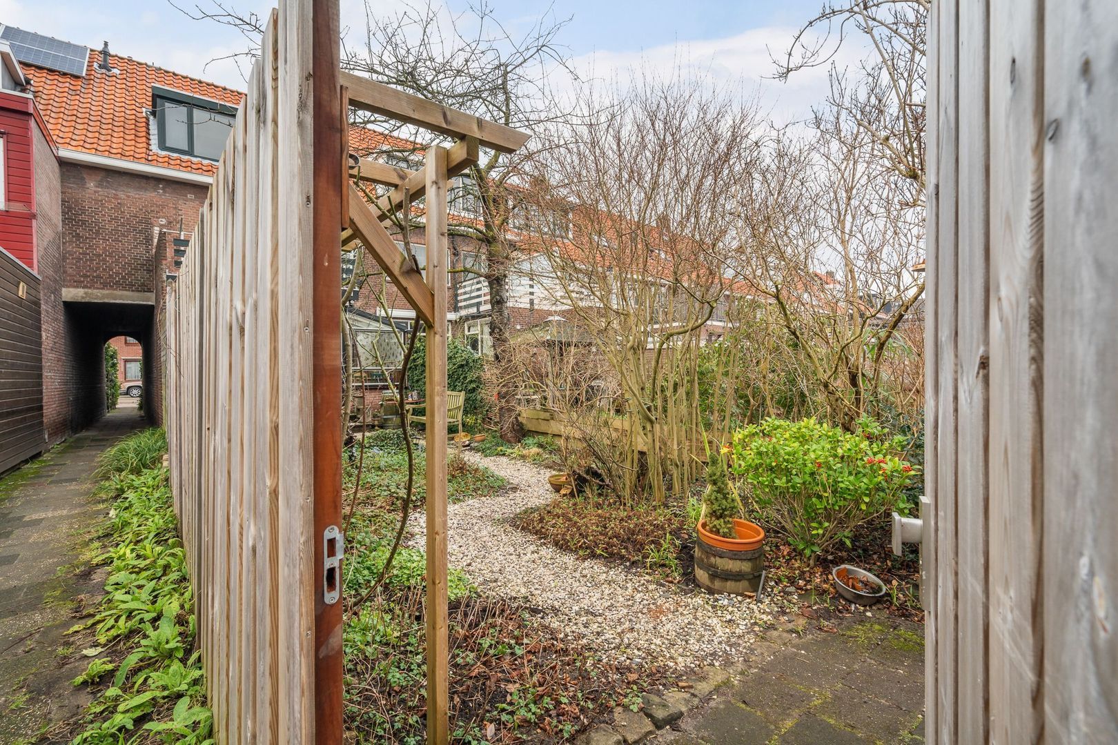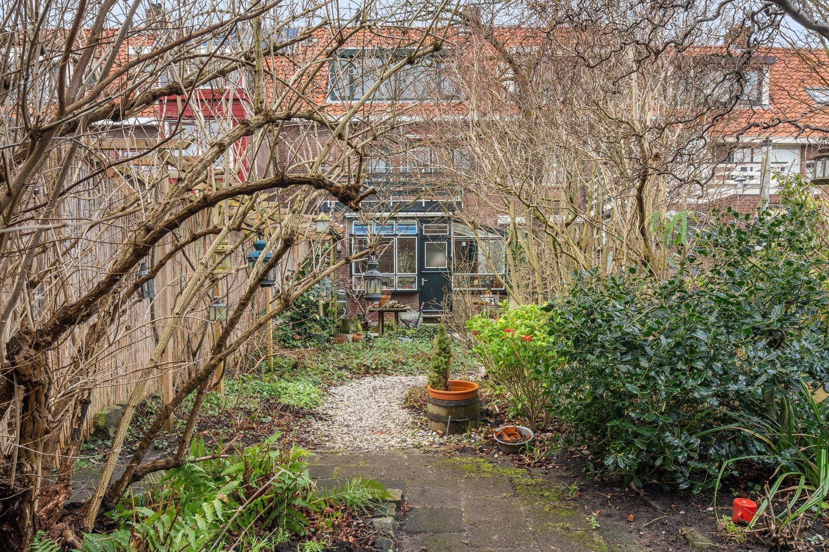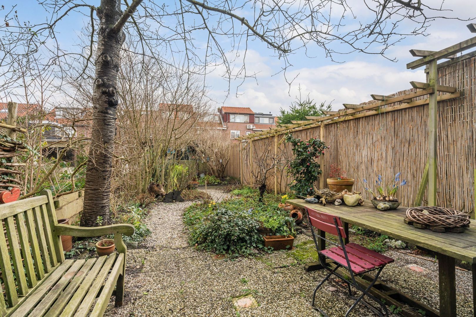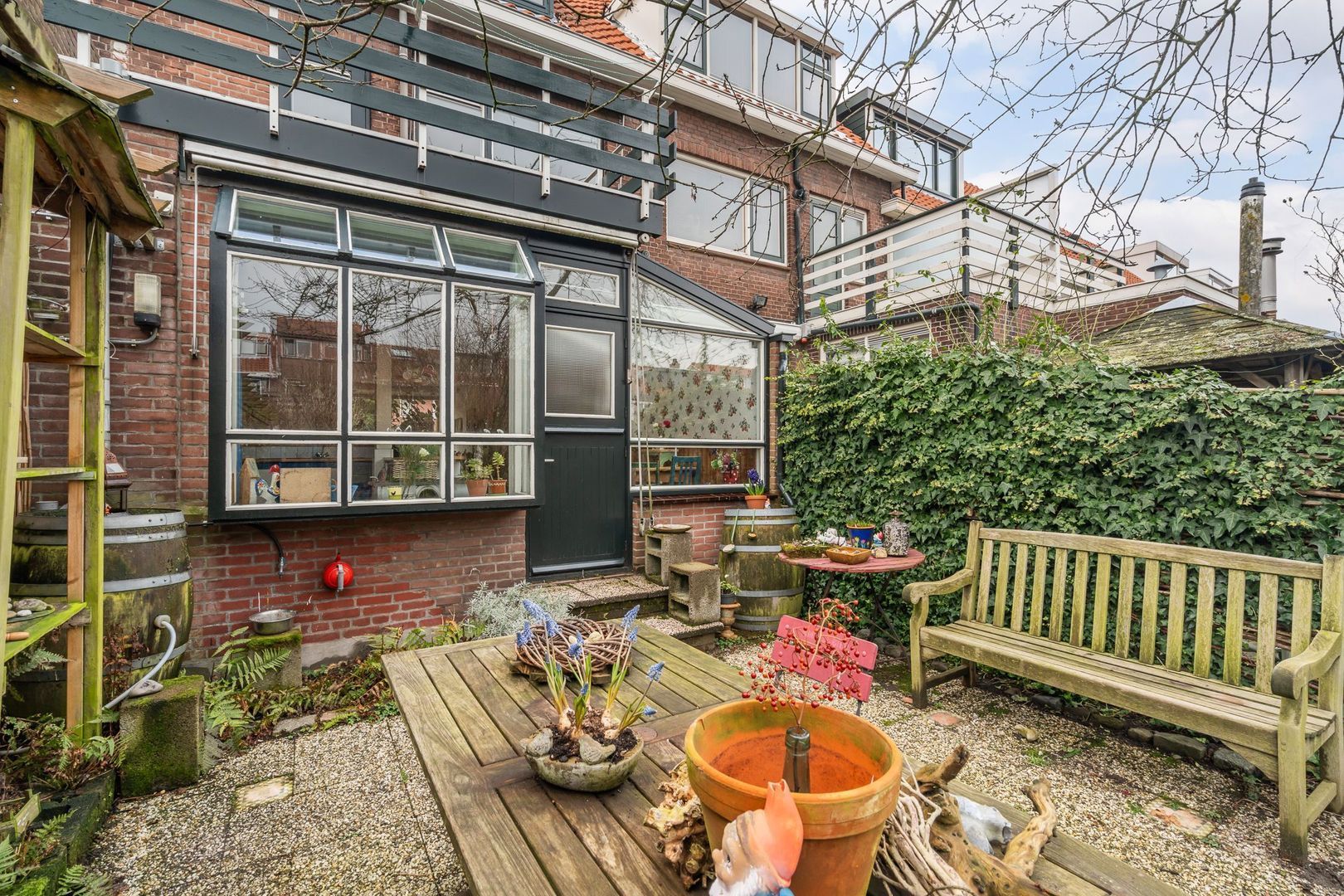 Wat een lekker ruime eengezinswoning is deze 5-kamerwoning met een ruim 16 meter diepe tuin op het zuiden. De ligging aan de brede Sportlaan is ideaal, met veel parkeervoorzieningen voor een jaren dertig wijk. De woonkamer van 46 m² heeft een uitbouw met een serre, een ruime woonkeuken en een sfeervolle houtkachel. De woning is op de verdieping extra breed, omdat de verdieping deels boven de steeg loopt. De woning is netjes onderhouden en sommige zaken zijn in de jaren negentig aangepakt. Ook is er wat aan verduurzaming gedaan: zo zijn alle ramen voorzien van dubbel glas en is de kruipruimte geïsoleerd met schelpen.