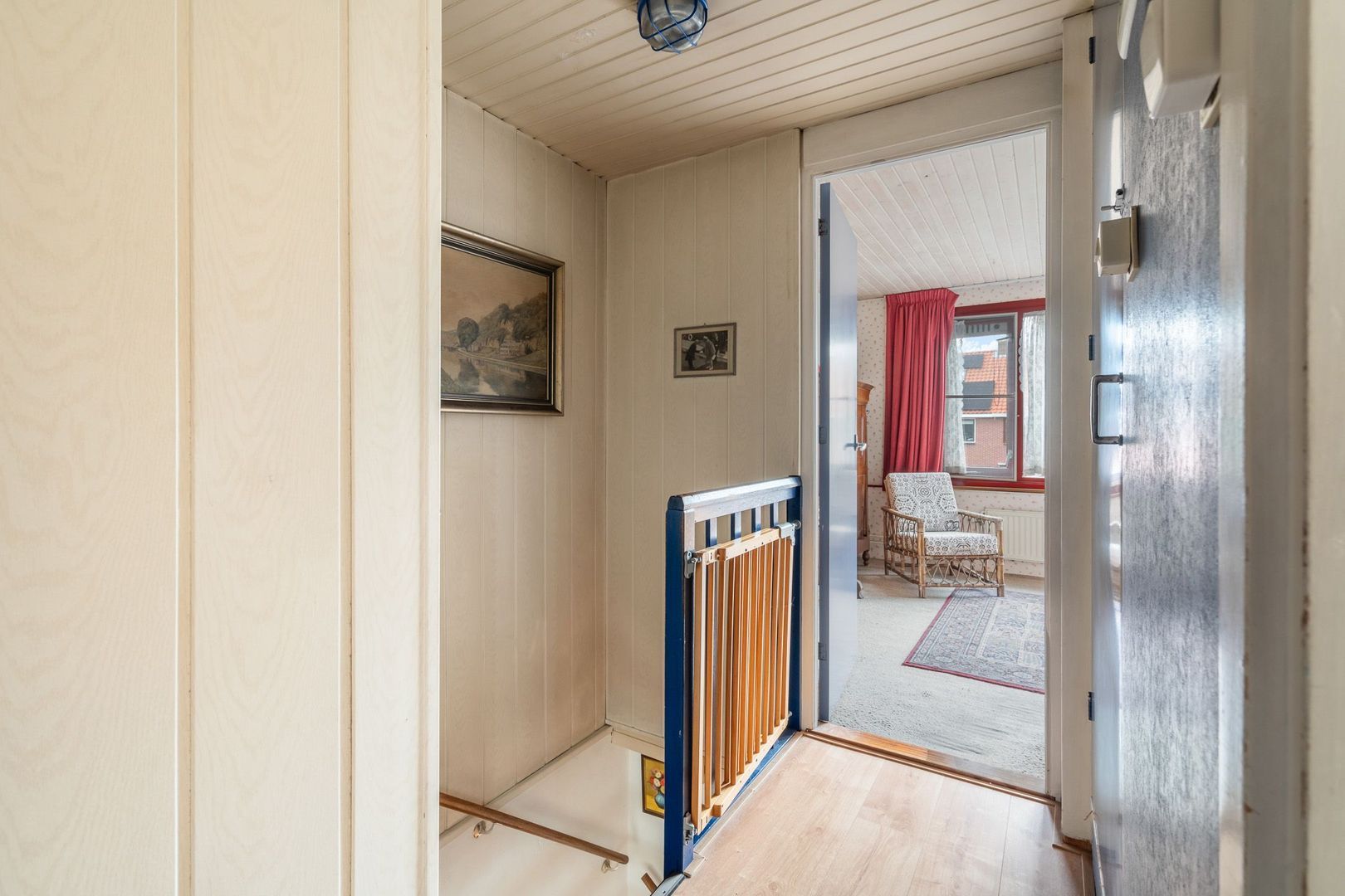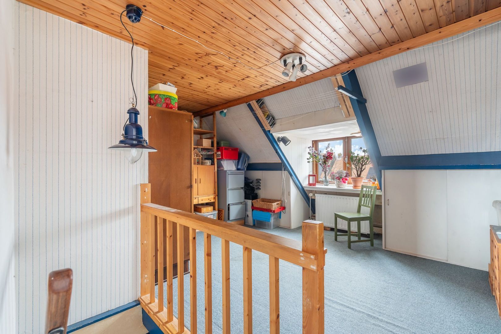 Voor slaapkamer/overloop van totaal 17 m² met opbergruimte in de schuine dakvlakken, dakkapel. Aan de tuinzijde slaapkamer van 17 m² met brede dakkapel, wastafel en toegang naar berging van 4 m² met cv-ketelopstelling.