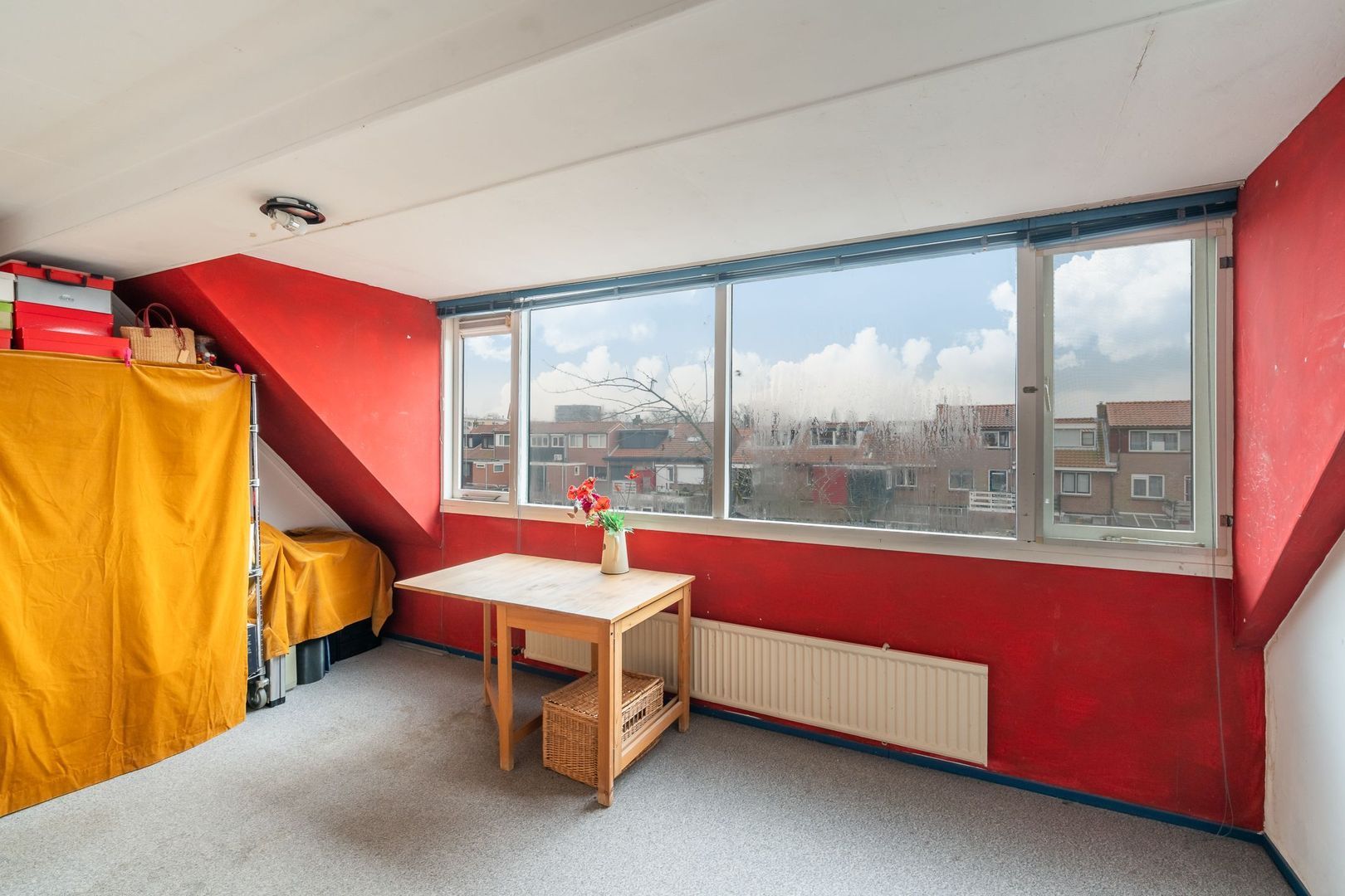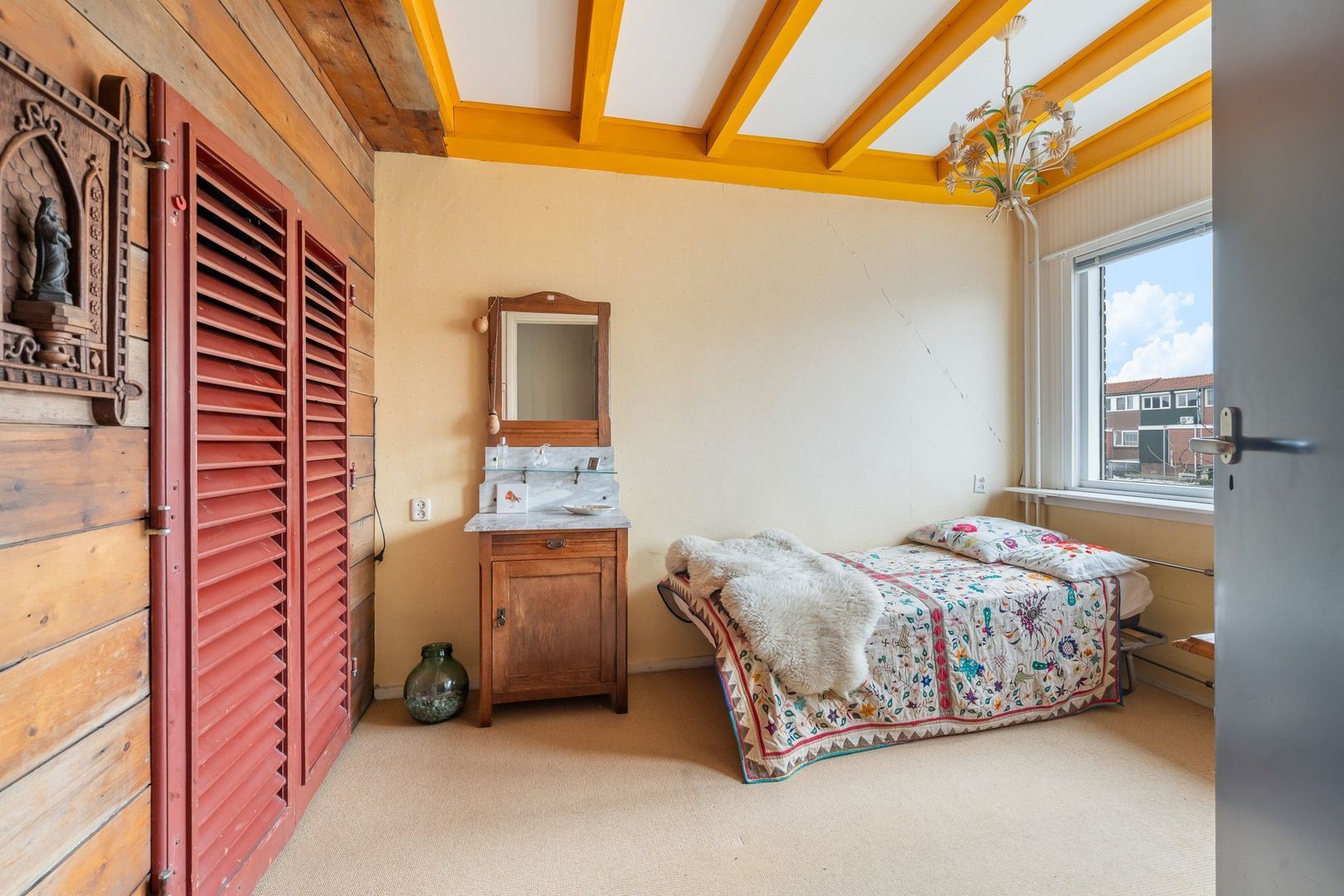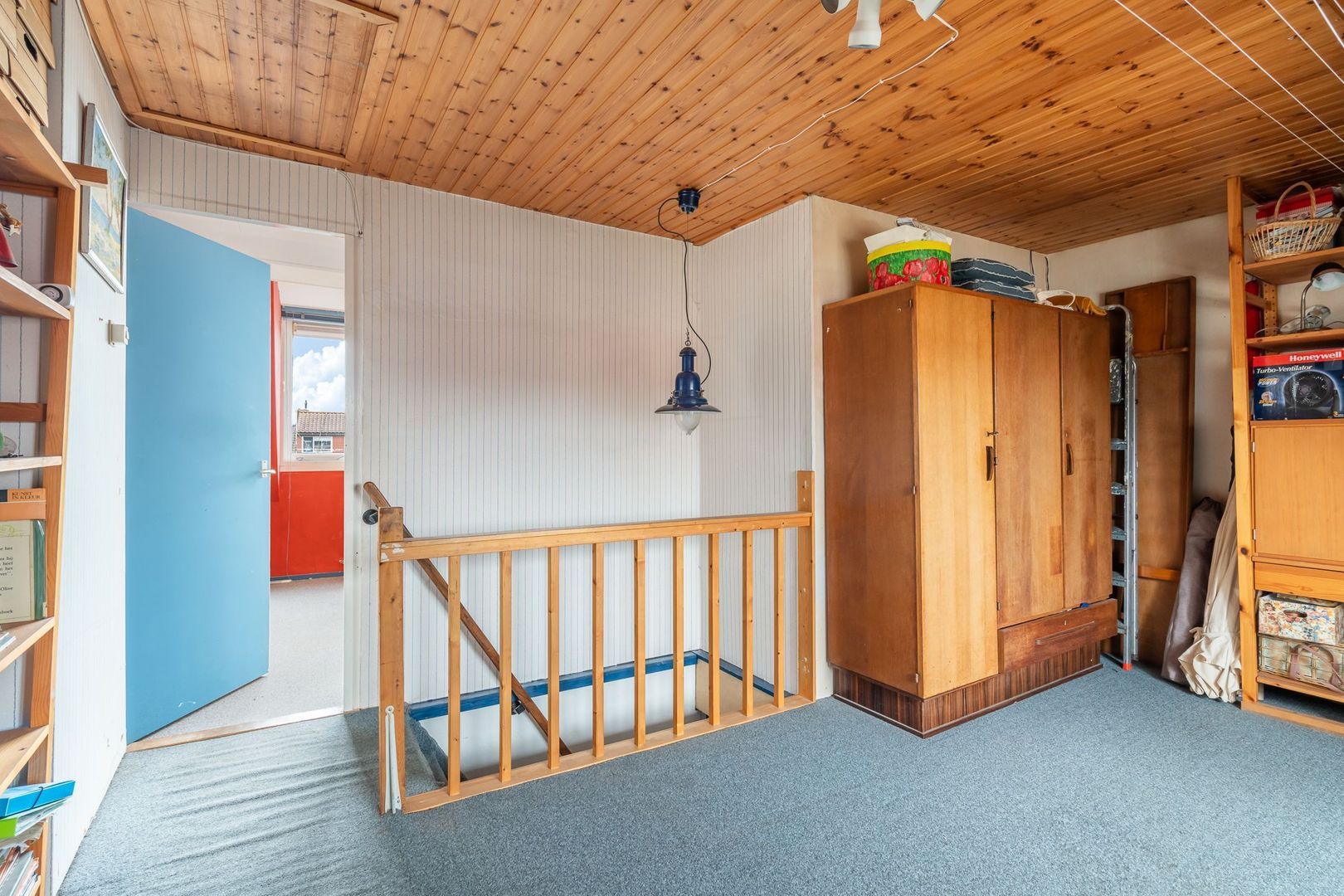 Overloop met toegang tot alle vertrekken op de verdieping. Voor slaapkamer van 16 m² over de gehele breedte, voorzien van houten plafond en kastenwand. Achter slaapkamer van 9,5 m² met kastenwand. Zeer royale badkamer (deels boven de steeg doorgebouwd) voorzien van douchecabine, 2e toilet, ligbad, wastafelmeubel en kast met aansluiting voor de wasmachine. Vanuit de badkamer is het ruime dakterras bereikbaar van totaal 10 m² en op het zuiden gelegen. Vaste trap naar zolderverdieping.