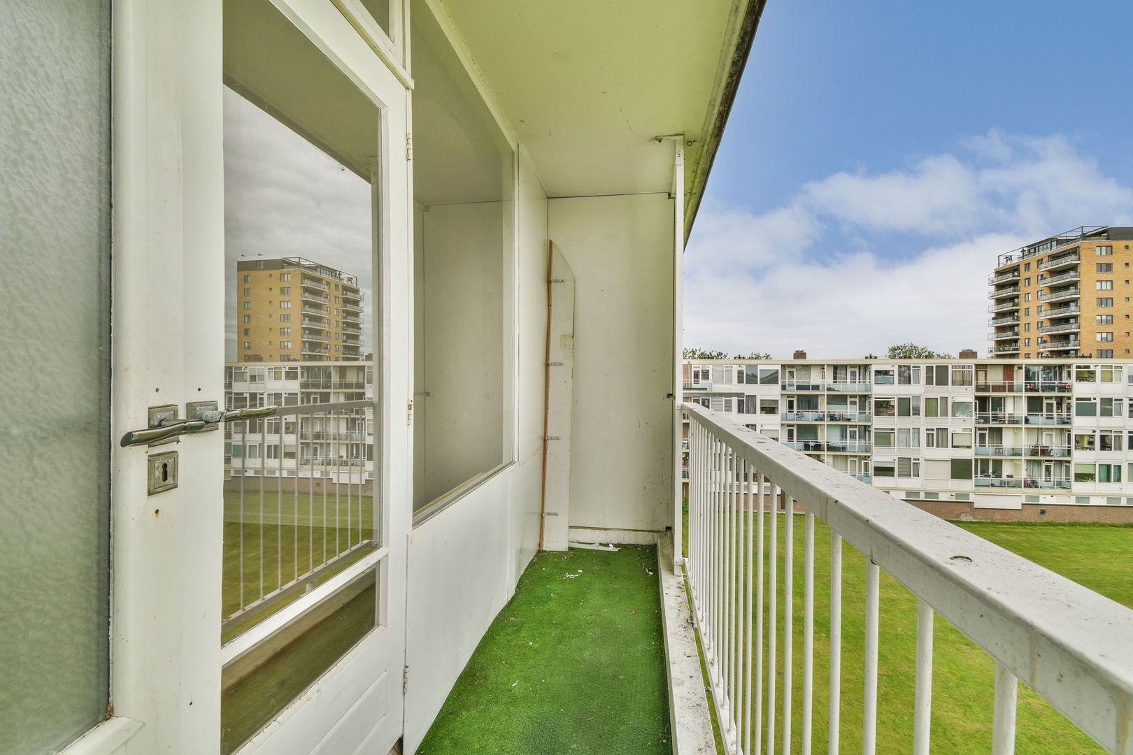 Balkon van ca 4 m2 op het noorden gelegen en vrij uitzicht over groot grasveld.