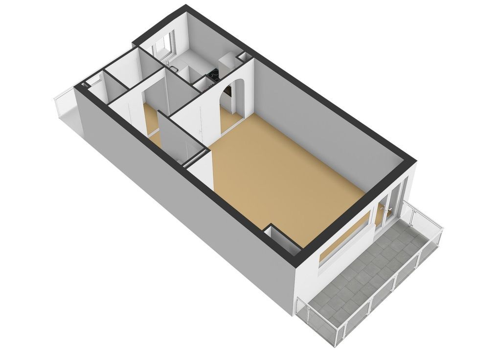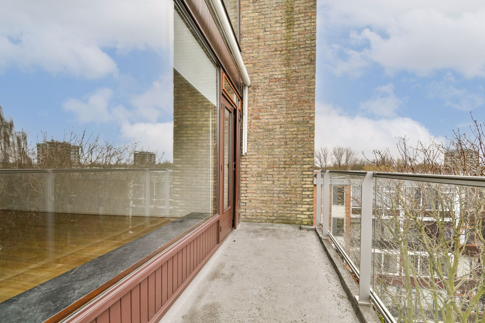 Het balkon van 7 m² ligt op het zonnige zuidwesten en is voorzien van aluminium hekwerk met glas en een zonnescherm. Er is ruimte voor minimaal vier stoelen.