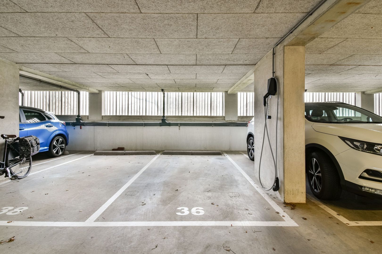 Parkeerplaats in de parkeergarage met eigen laadpunt voor elektrisch laden. In de parkeergarage zijn een aantal gemeenschappelijke fietsenbergingen. Tevens heeft iedere woning het gebruiksrecht van een fietsenkluis bij het complex.