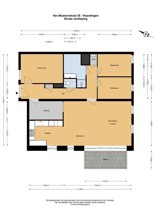 Van Maanenstraat 36 heeft een woonoppervlakte van 115 m2 en een zonnig terras op het Zuid-Westen van bijna 9 m2 met vrij uitzicht over het groen.