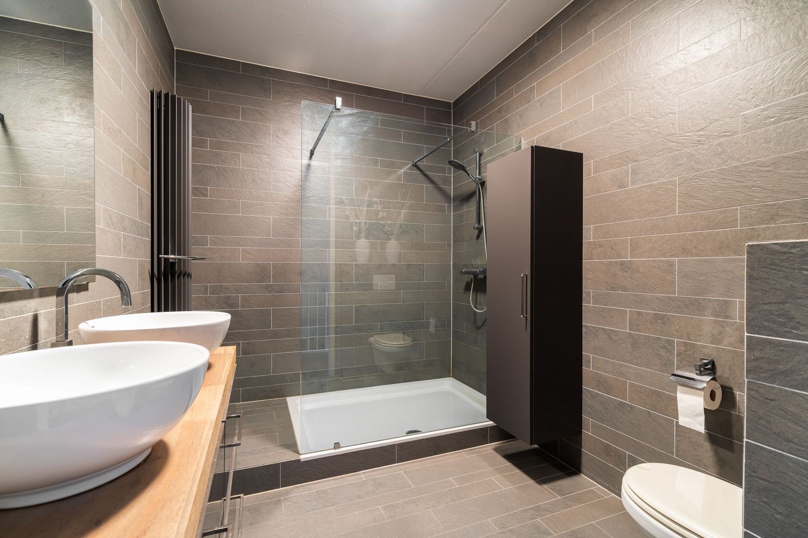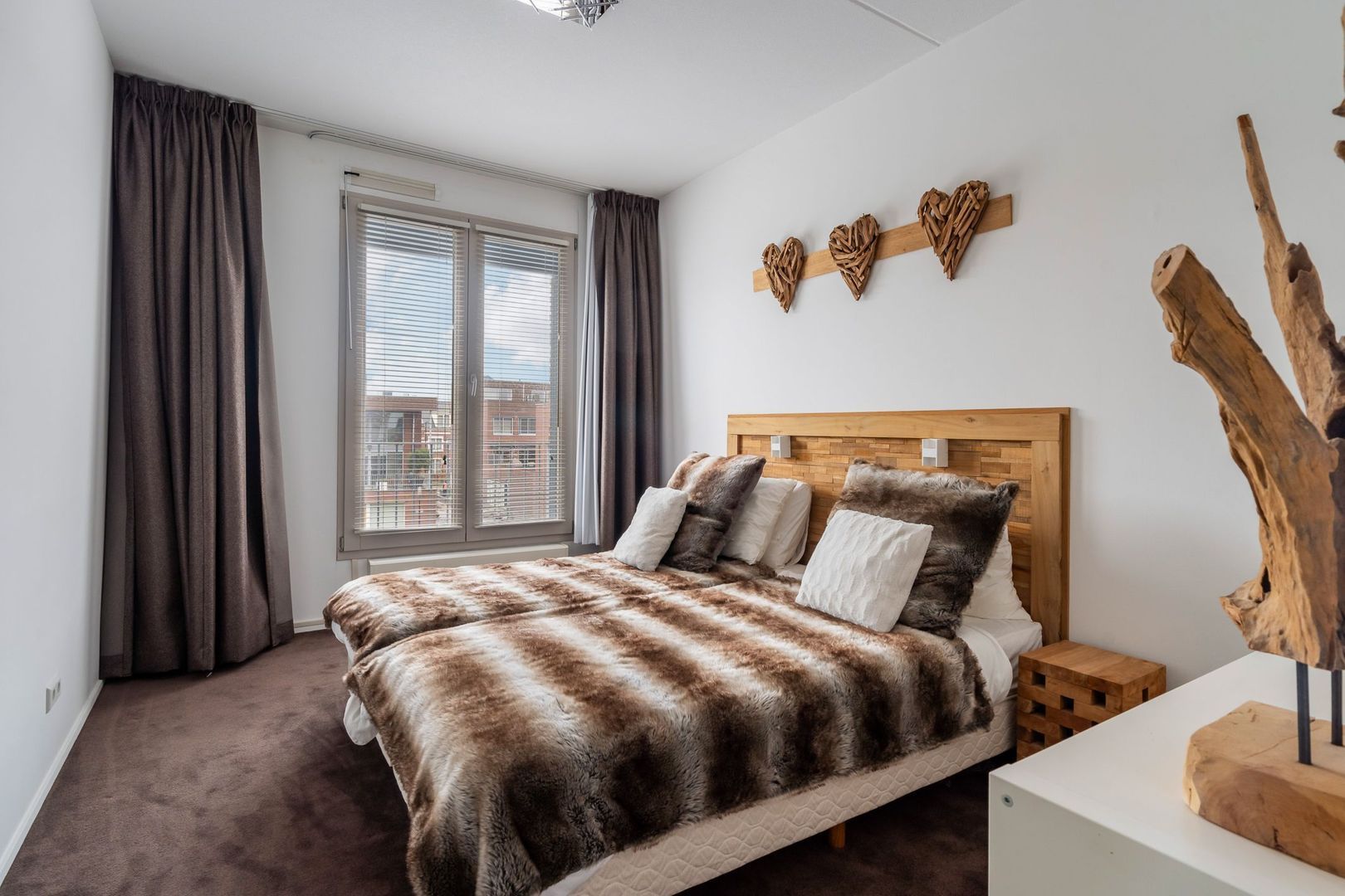 Overloop, design badkamer met modern tegels en voorzien van wastafelmeubel met 2 wastafels, grote inloopdouche, thermostaatkraan, hangend 3e toilet, designradiator en elektrische vloerverwarming. Hoofdslaapkamer van 15 m2 en 2 slaapkamers aan de waterzijde van 8 m2 en van 11 m2. Inpandige berging met combi-ketel en elektrische warmptepompboiler. Alle kamers op deze verdieping zijn voorzien van rolluiken en Franse balkons.