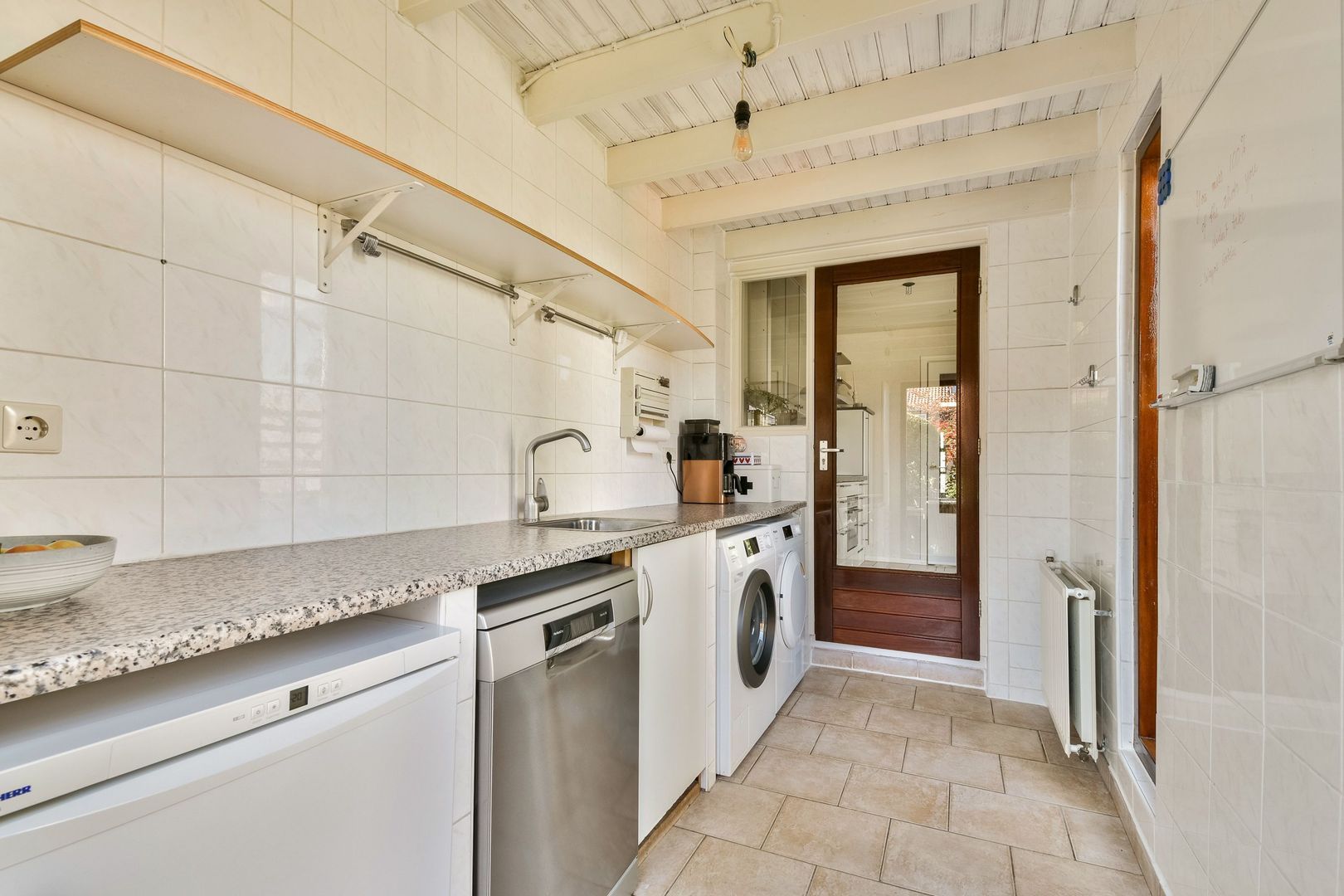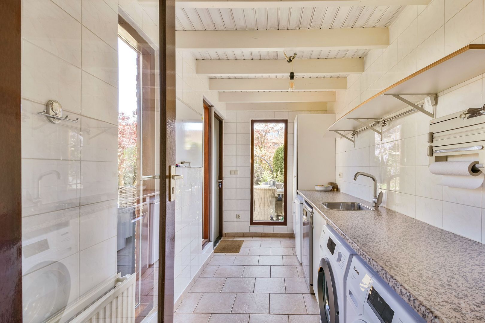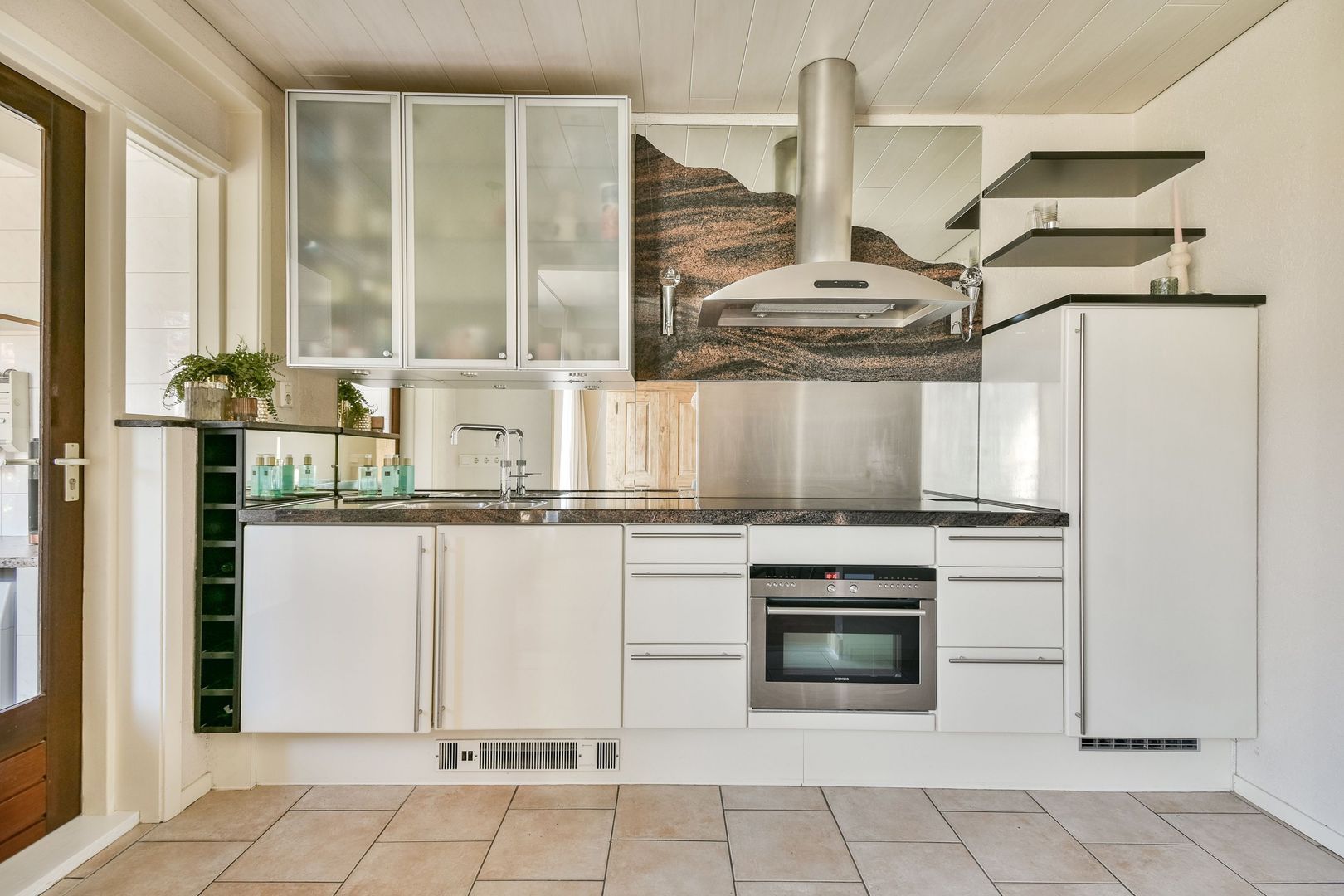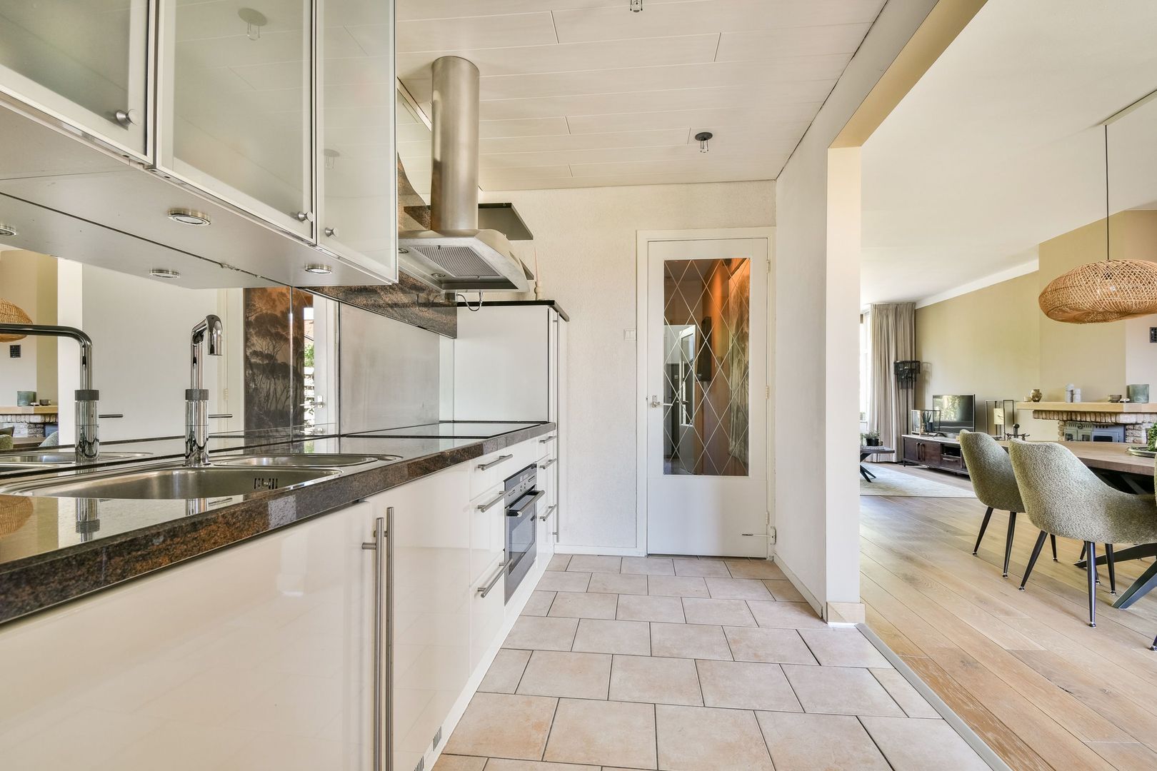 De luxe, mooie hoogglans keuken heeft een granieten aanrechtblad en achterwand en heeft de volgende inbouwapparatuur: inductie kookplaat, rvs afzuigkap, koelkast, combi-oven, Quooker kraan en kickspace verwarming. Aansluitend is er in 2000 een bijkeuken aangebouwd van 7,3 m2 met aansluiting voor de wasmachine, vaatwasser en extra kastruimte. Deze uitbouw is geïsoleerd, verwarmd en heeft een extra toegangsdeur naar de tuin.