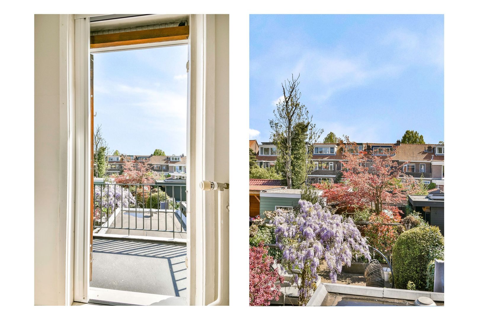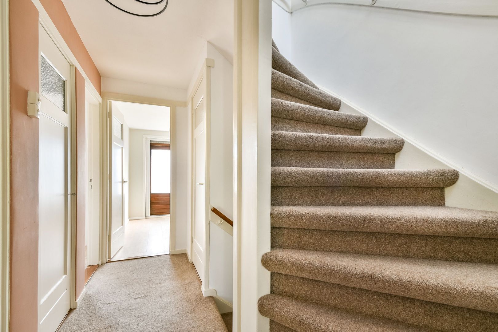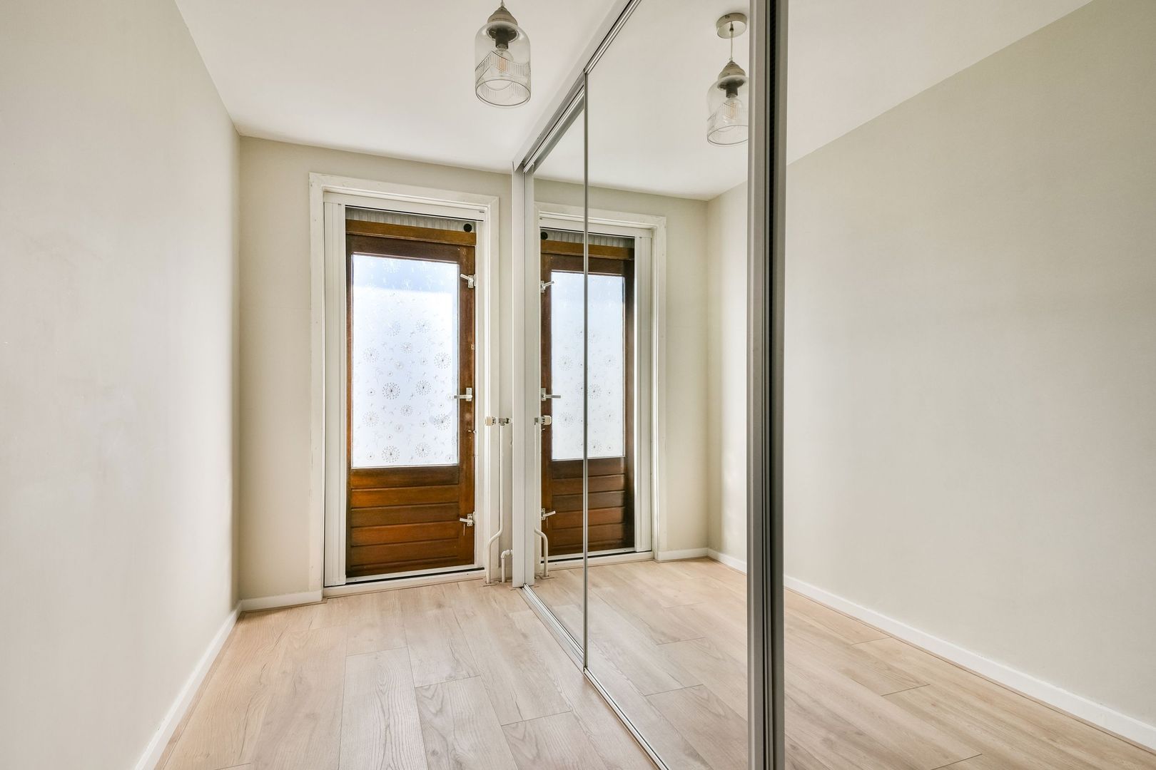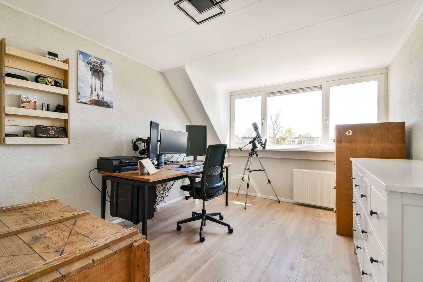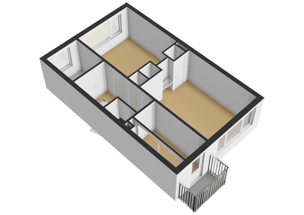 Zijkamer van 7 m2, op dit moment als kastenkamer in gebruik, met toegangsdeur naar balkon van 2 m2. Vaste trap naar 2e verdieping.