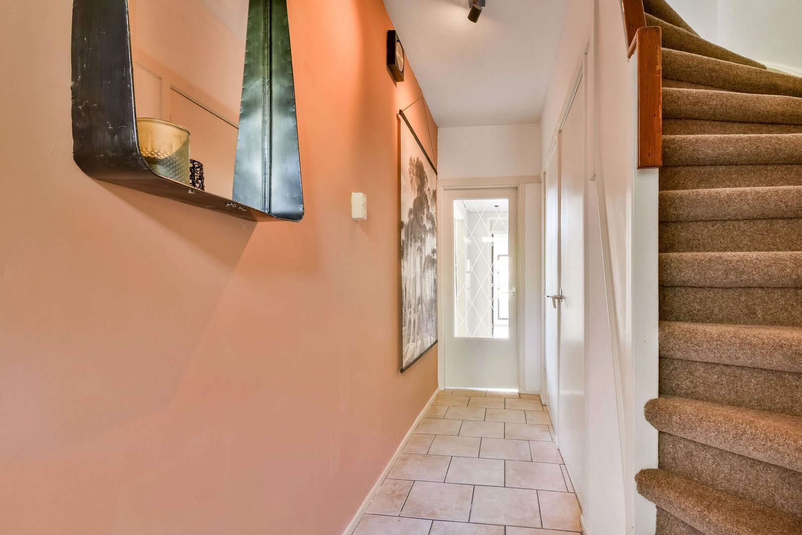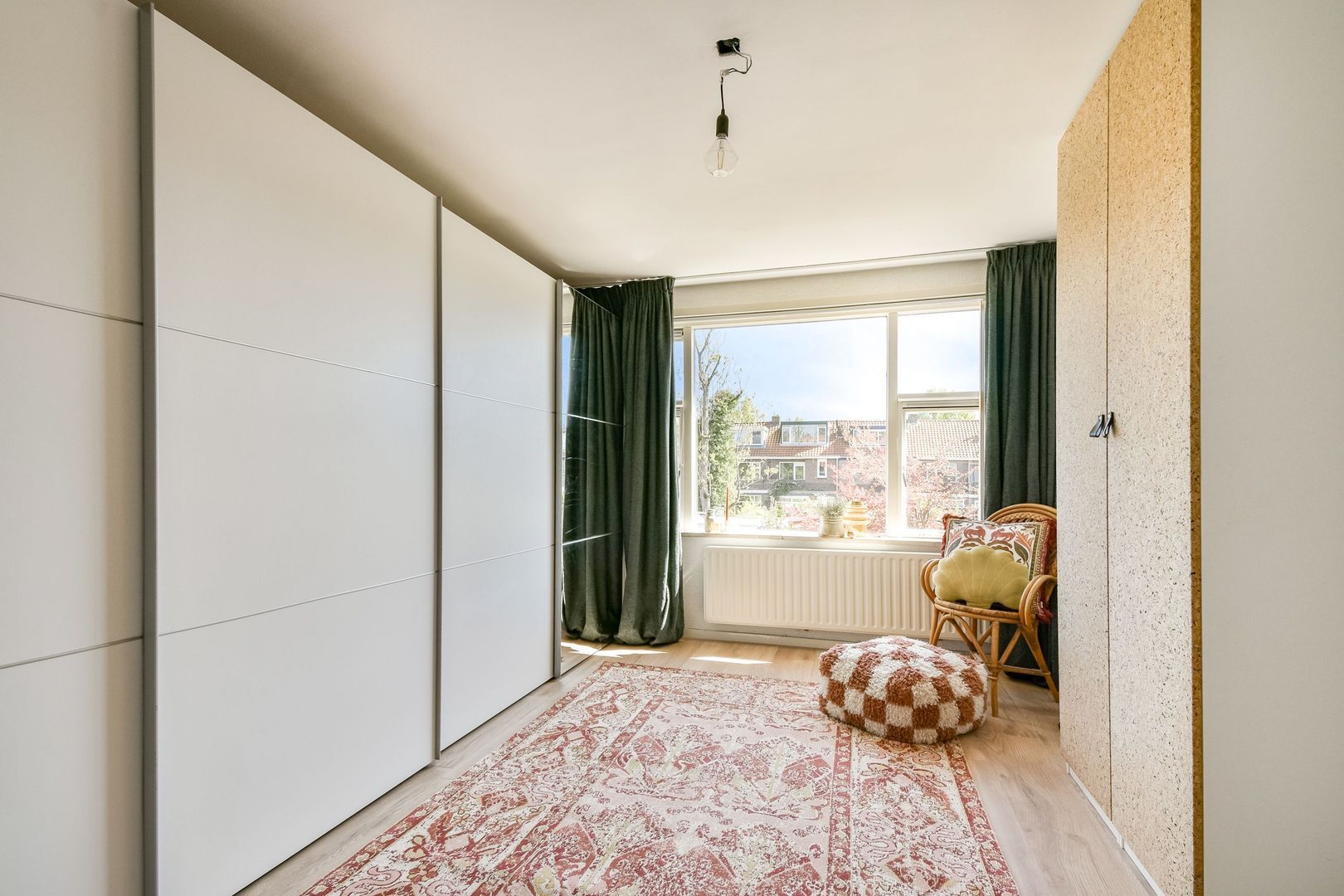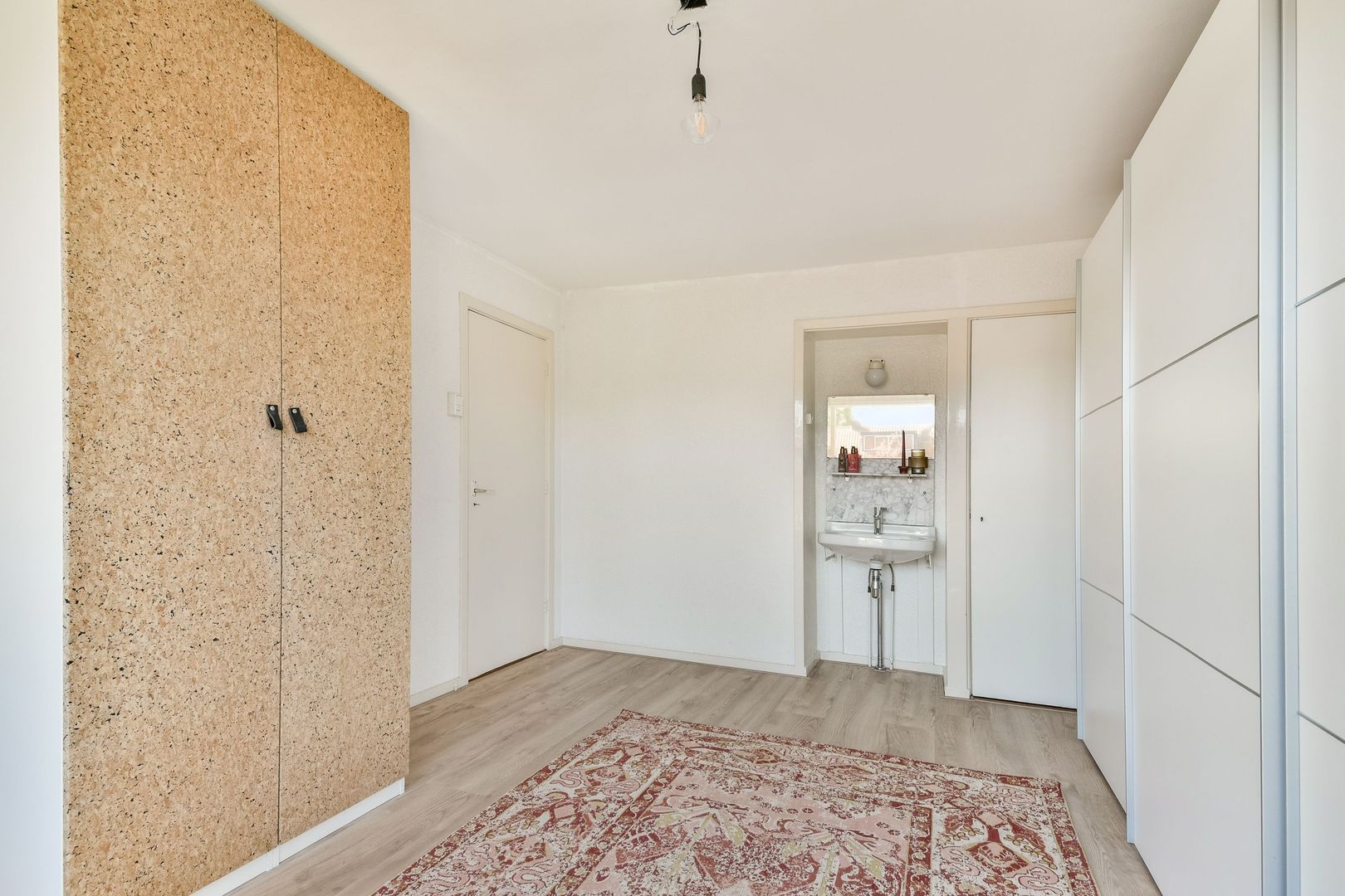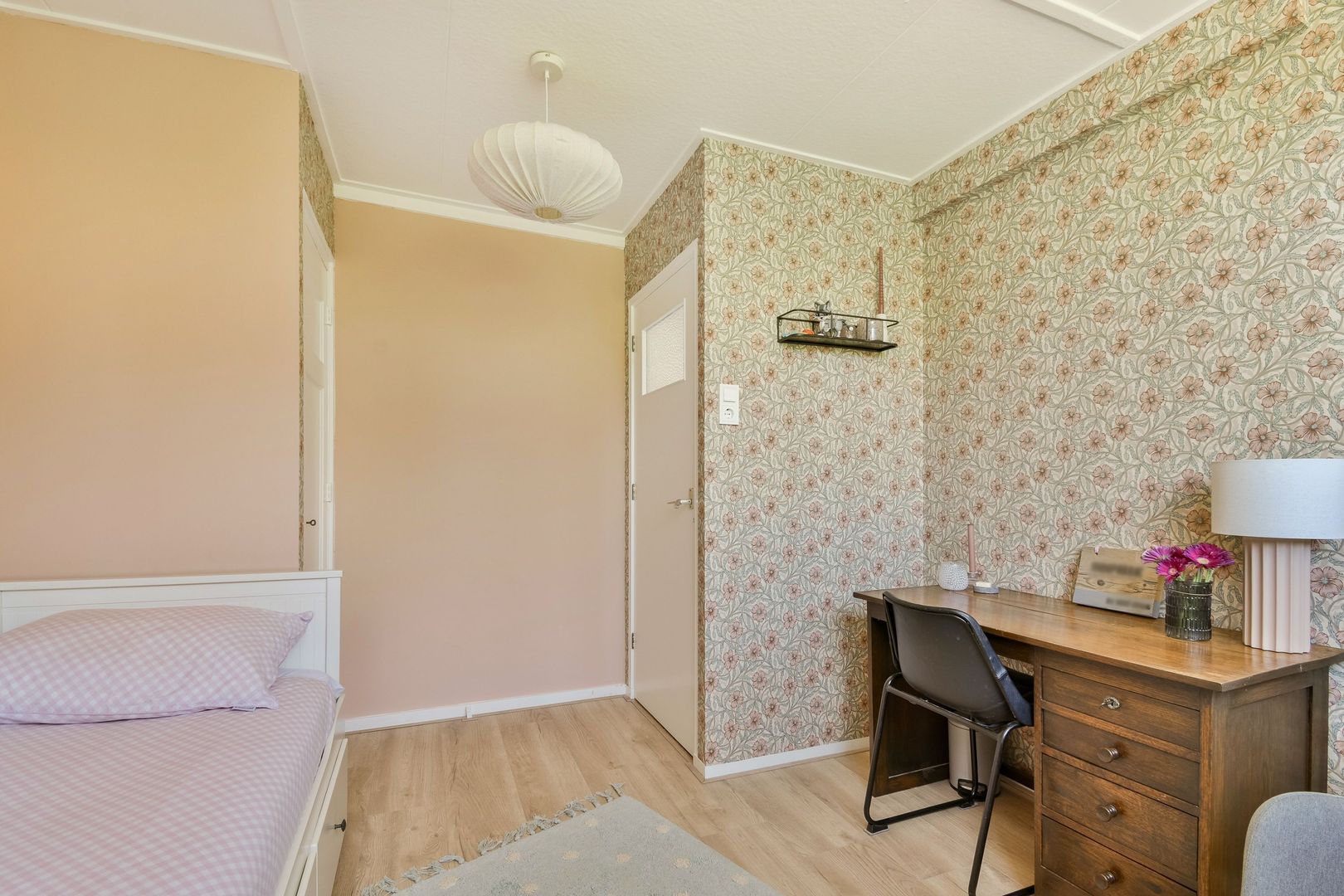 Zijkamer van 7 m2, op dit moment als kastenkamer in gebruik, met toegangsdeur naar balkon van 2 m2. Vaste trap naar 2e verdieping.