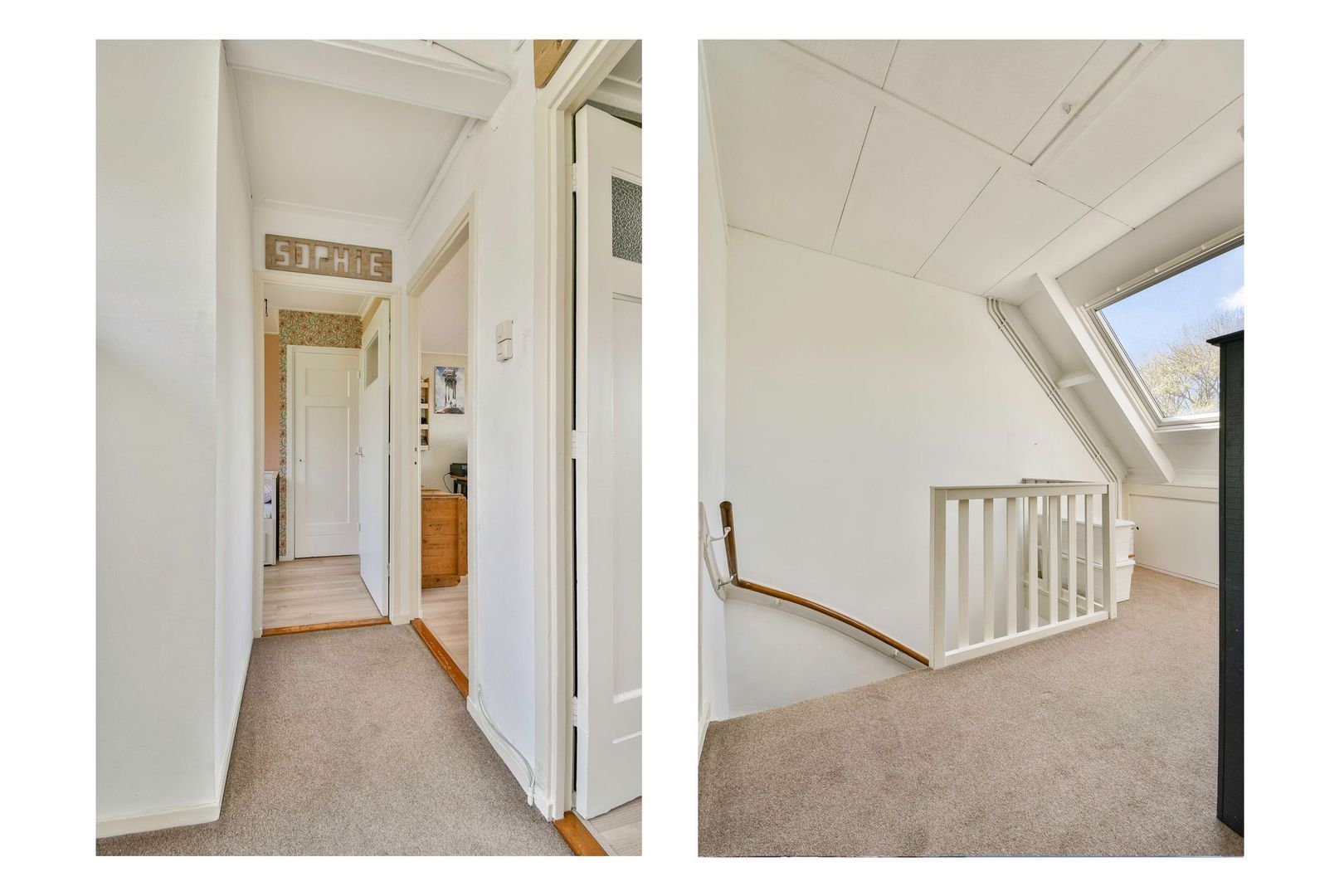 Overloop met Velux-dakraam, bergruimte in de schuine dakvlakken en toegang tot alle vertrekken.
