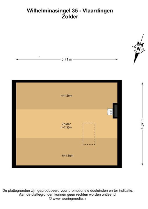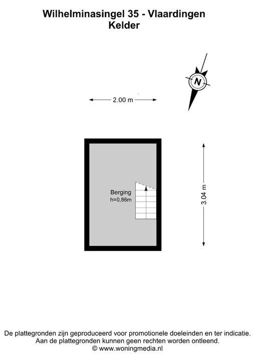 De kelder is ca. 1 meter hoog en heeft bijna 7 m2 vloeroppervlakte.